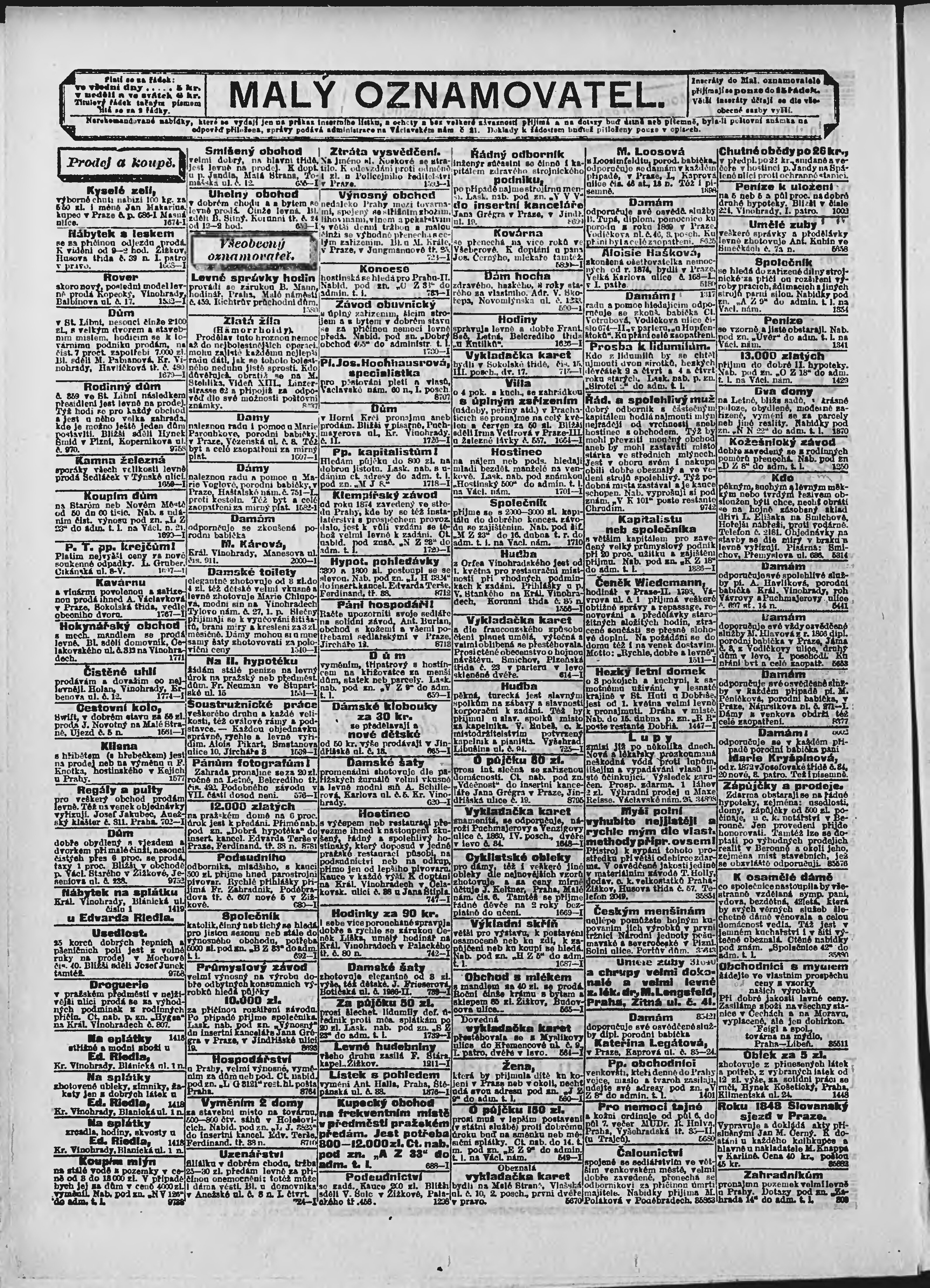 * Datum vydání výtisku: 10.4.1898 Číslo výtisku: 100 Poznámky k výtisku: ranní vydání;