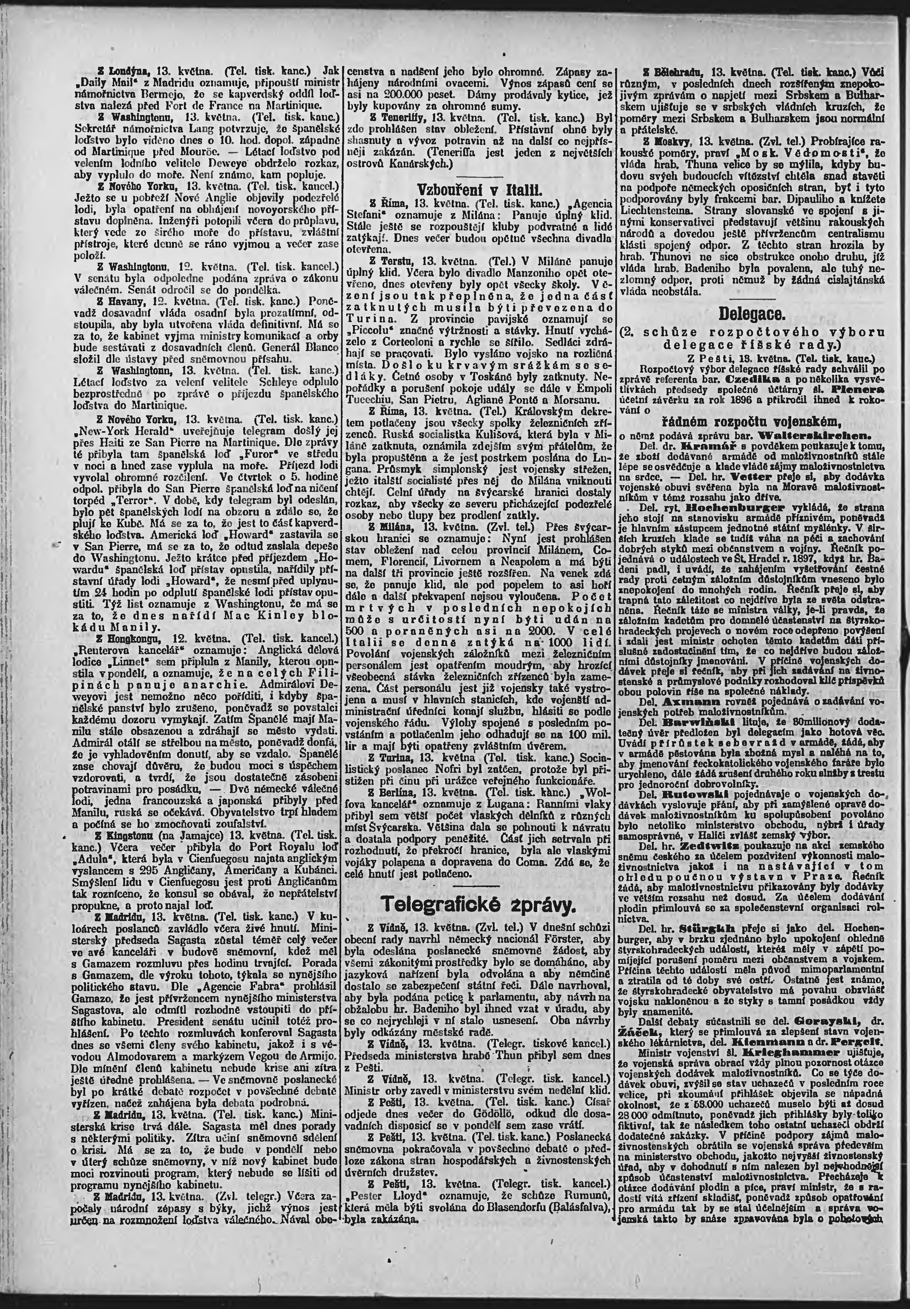 * Datum vydání výtisku: 14.5.1898 Číslo výtisku: 133 Poznámky k výtisku: ranní vydání;