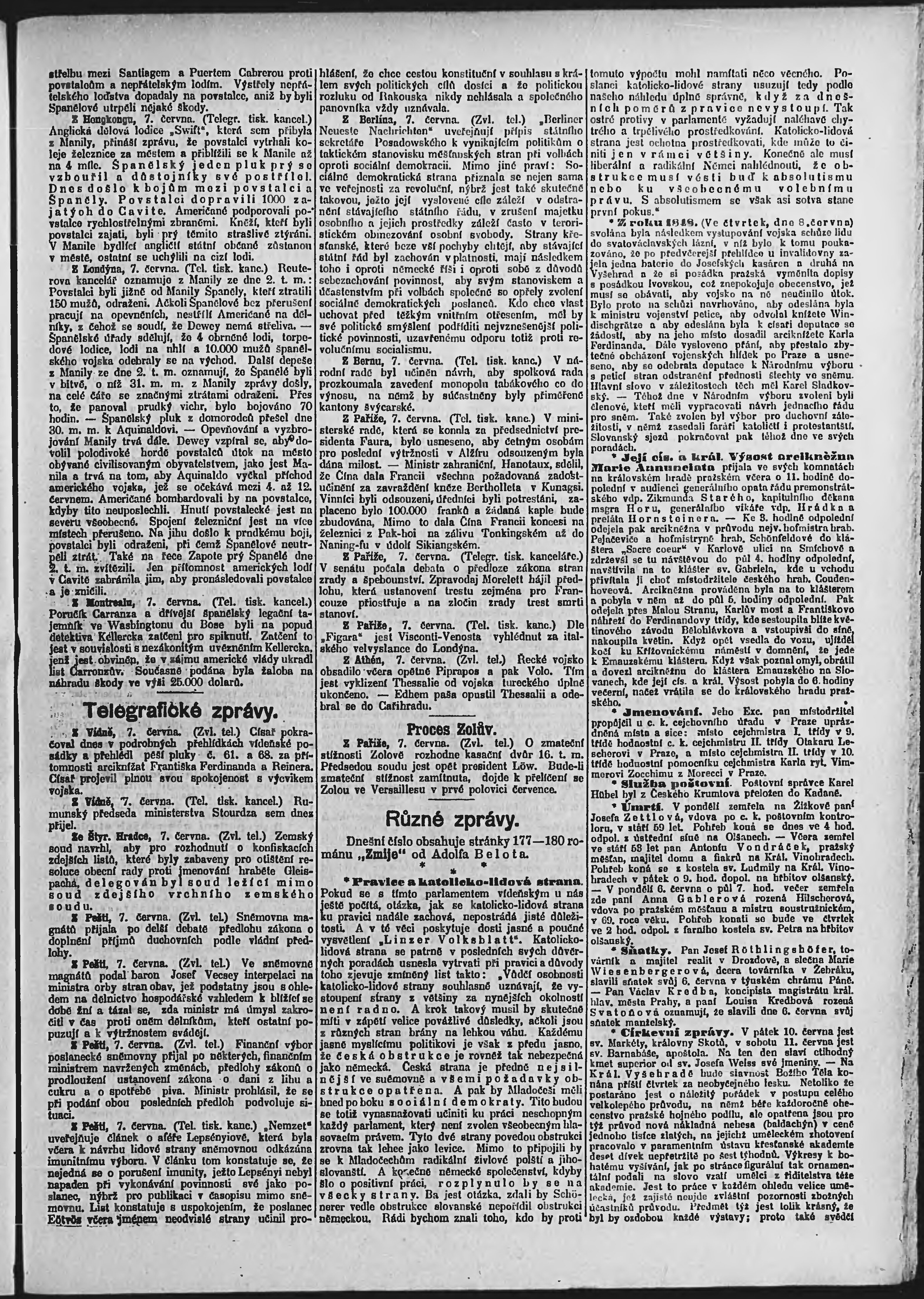 * Datum vydání výtisku: 8.6.1898 Číslo výtisku: 156 Poznámky k výtisku: ranní vydání;