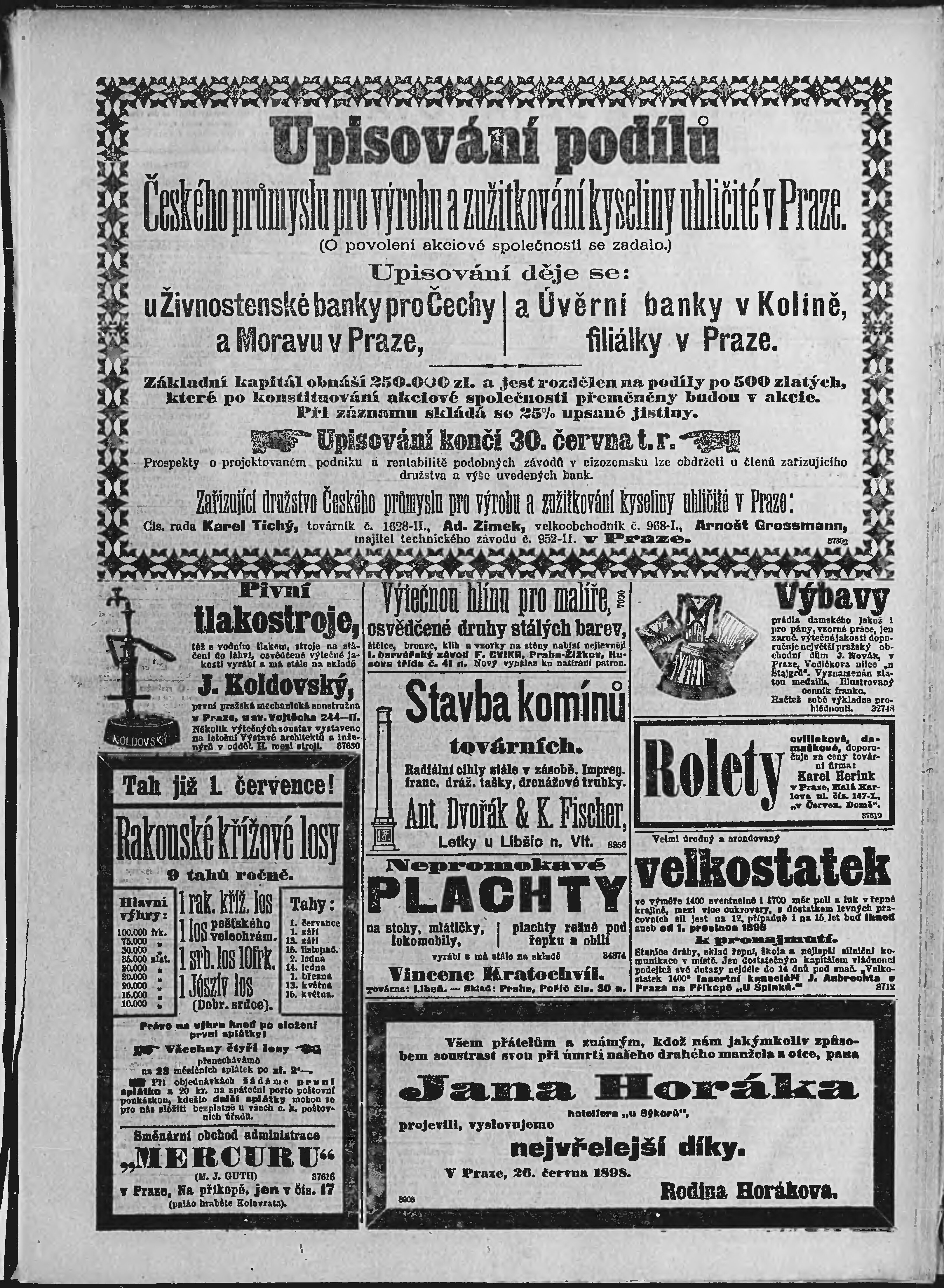 * Datum vydání výtisku: 28.6.1898 Číslo výtisku: 176 Poznámky k výtisku: ranní vydání;