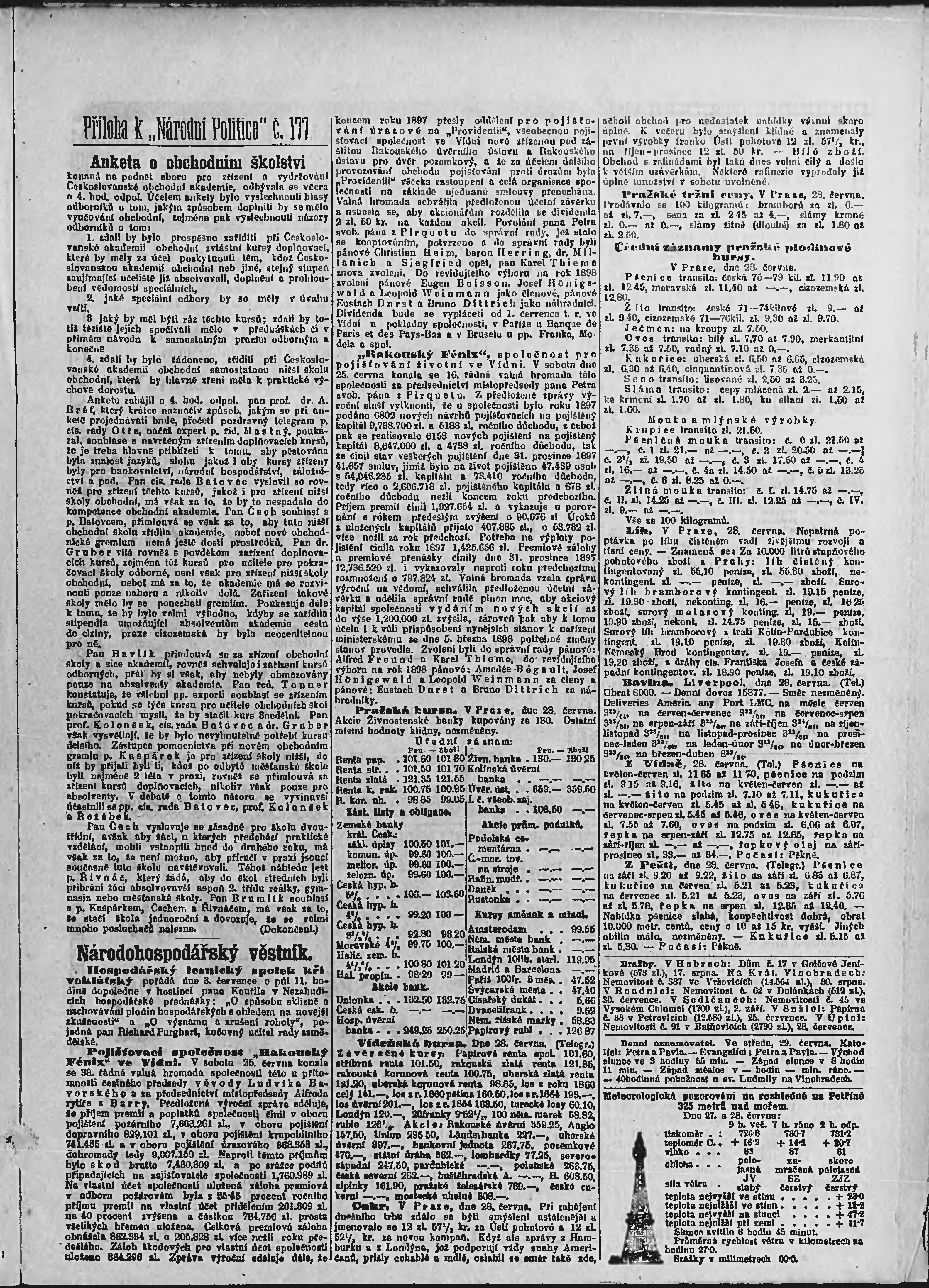 * Datum vydání výtisku: 29.6.1898 Číslo výtisku: 177 Poznámky k výtisku: ranní vydání;