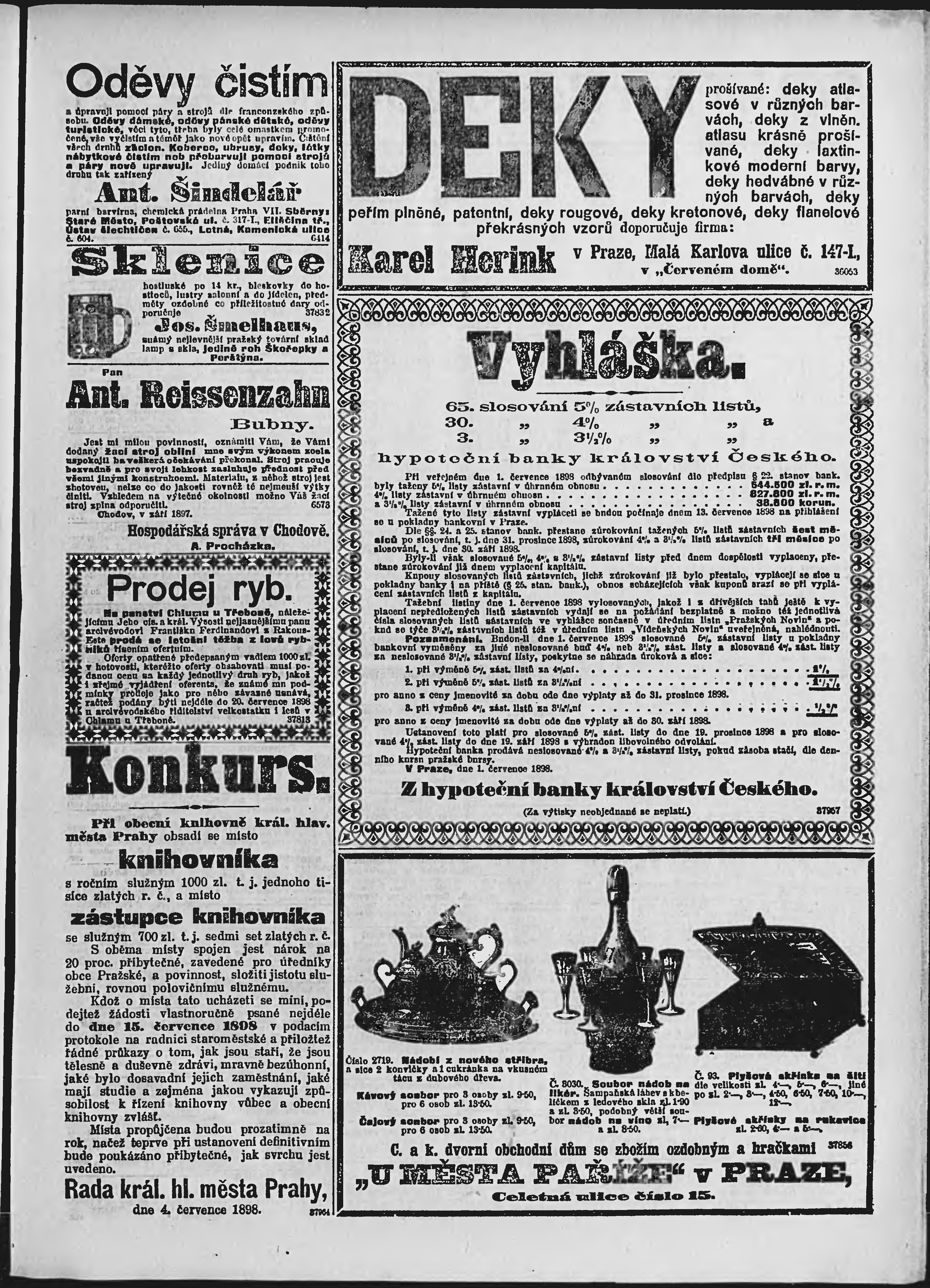 * Datum vydání výtisku: 7.7.1898 Číslo výtisku: 185 Poznámky k výtisku: ranní vydání;