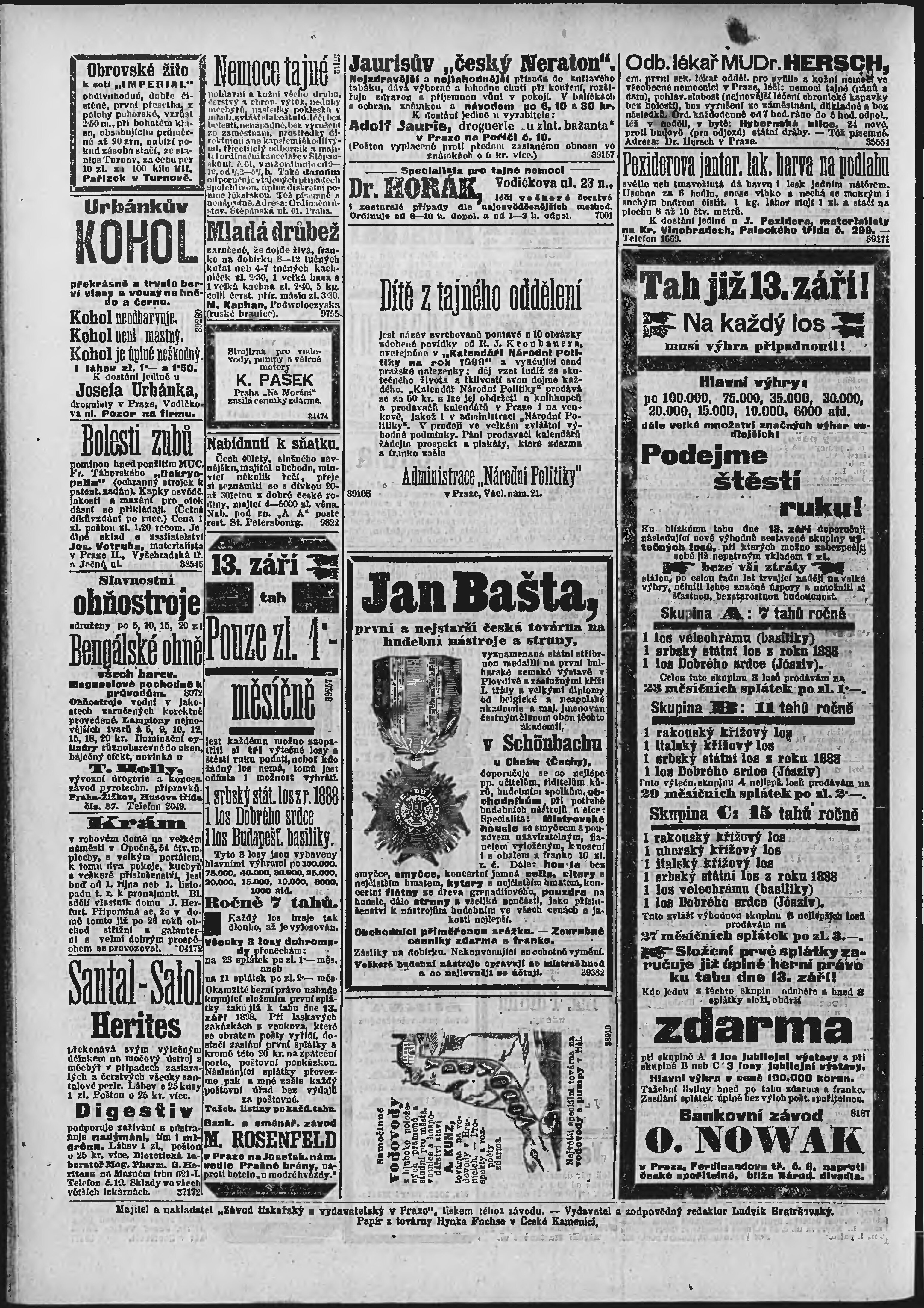 * Datum vydání výtisku: 10.9.1898 Číslo výtisku: 249 Poznámky k výtisku: ranní vydání;