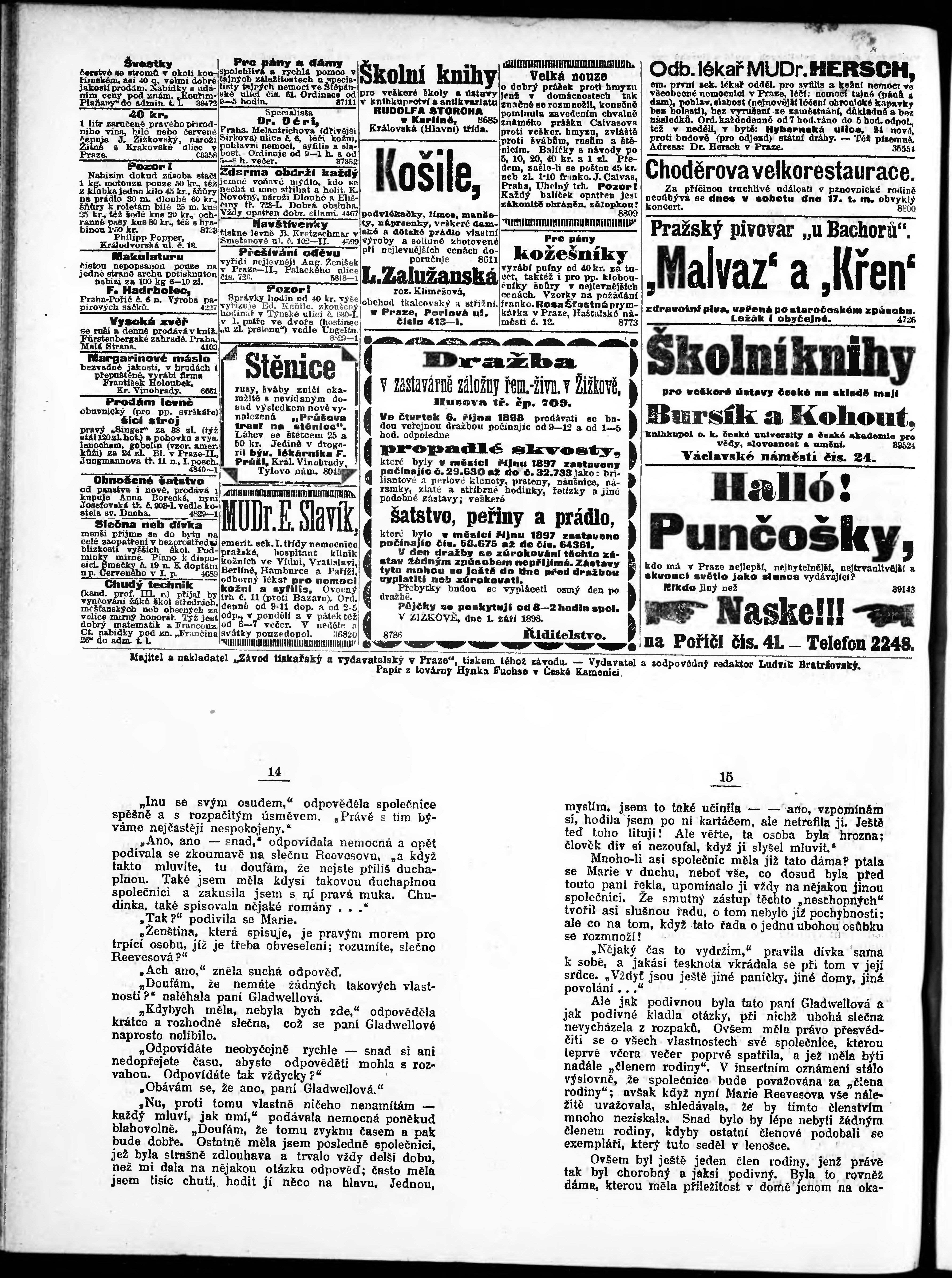 * Datum vydání výtisku: 17.9.1898 Číslo výtisku: 256 Poznámky k výtisku: odpolední vydání;