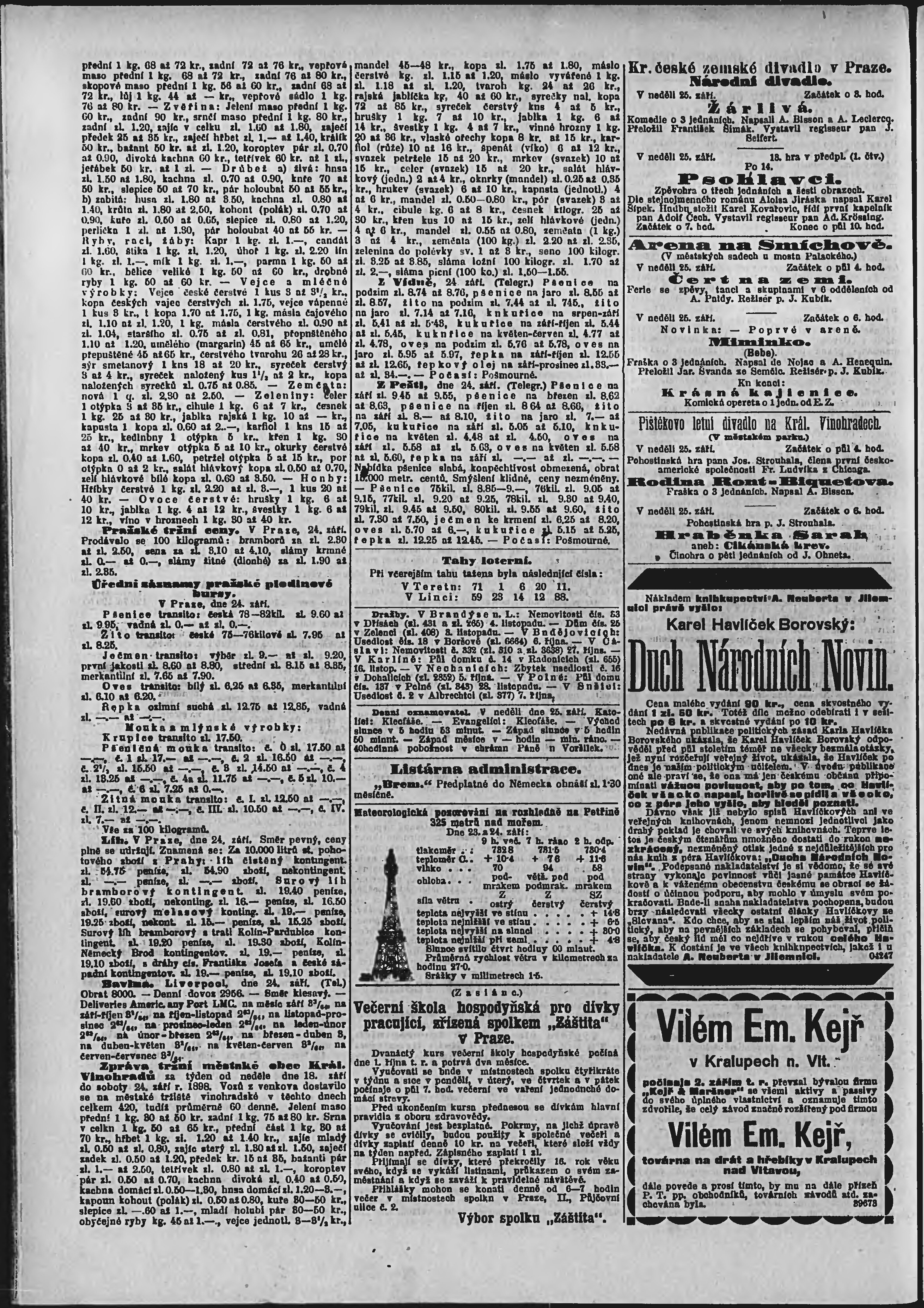 * Datum vydání výtisku: 25.9.1898 Číslo výtisku: 264 Poznámky k výtisku: ranní vydání;