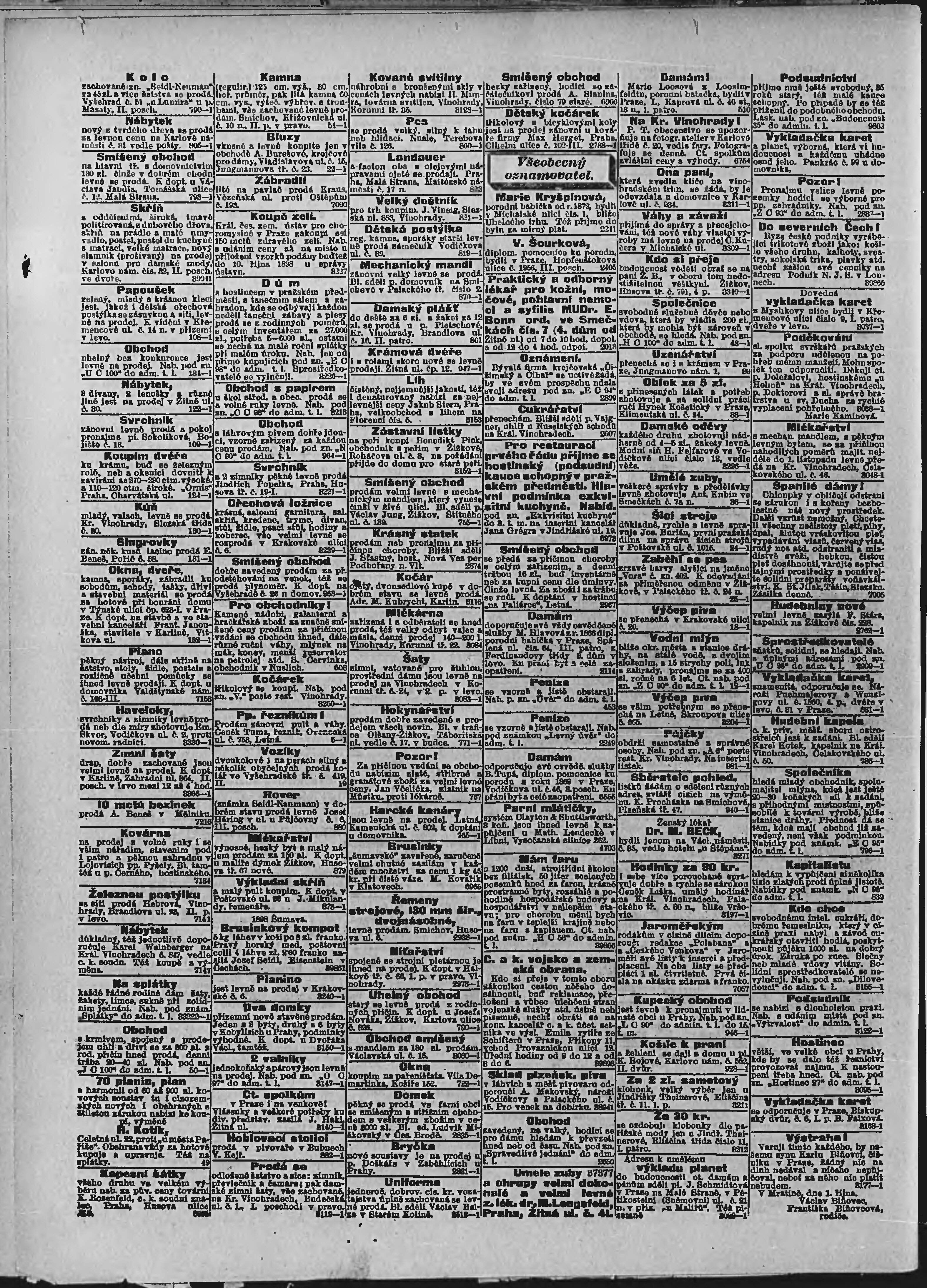 * Datum vydání výtisku: 2.10.1898 Číslo výtisku: 271 Poznámky k výtisku: ranní vydání;