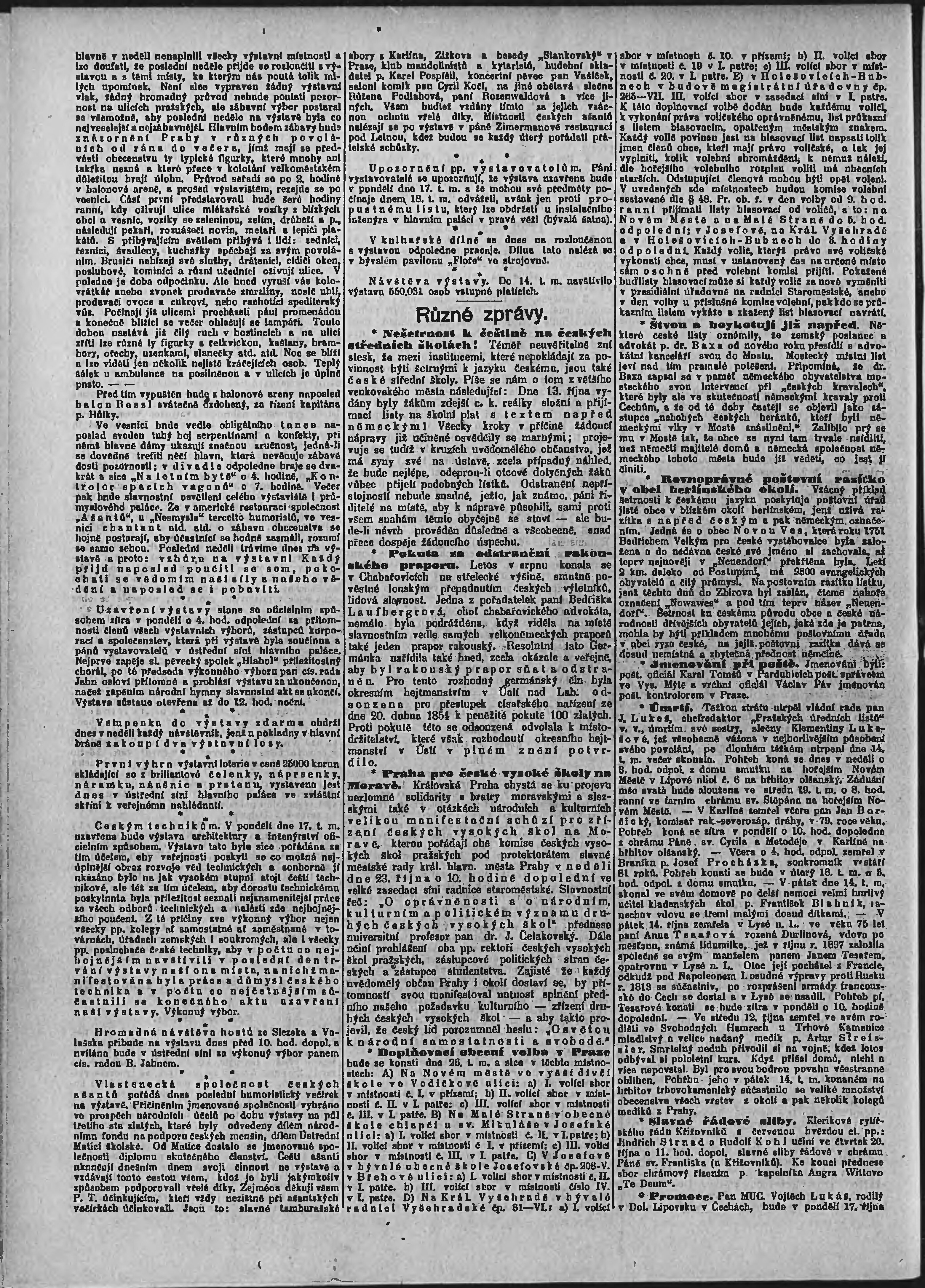 * Datum vydání výtisku: 16.10.1898 Číslo výtisku: 285 Poznámky k výtisku: ranní vydání;