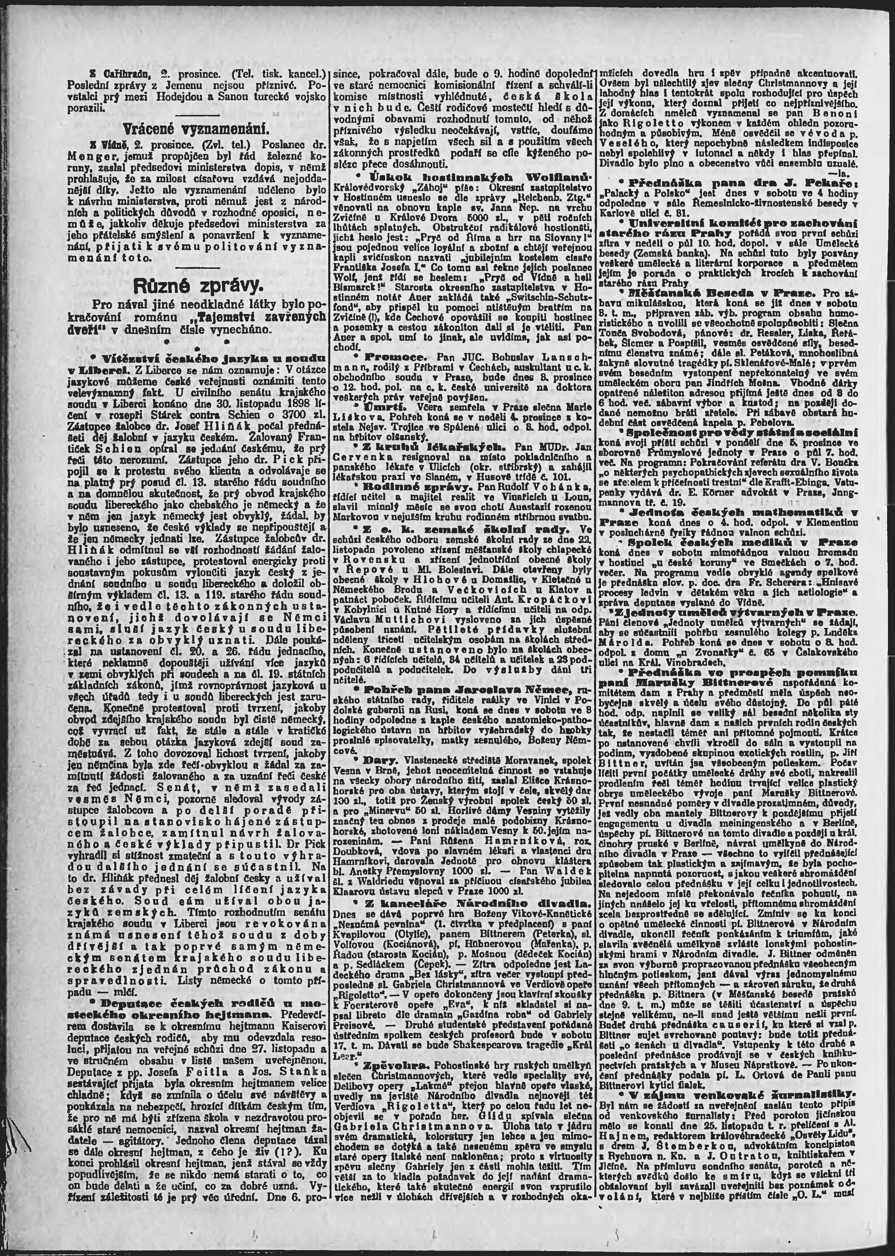 * Datum vydání výtisku: 3.12.1898 Číslo výtisku: 333 Poznámky k výtisku: ranní vydání;