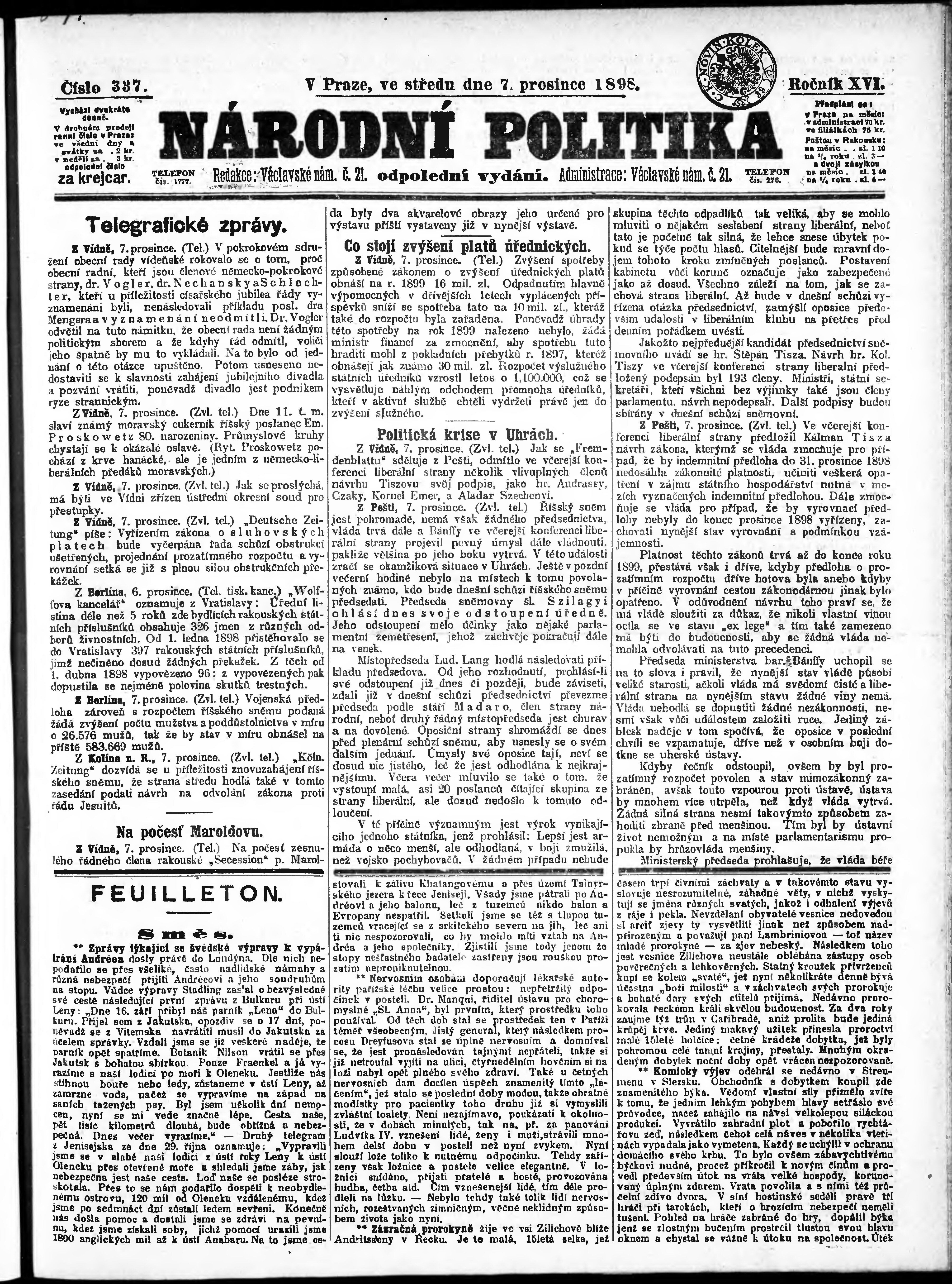 * Datum vydání výtisku: 7.12.1898 Číslo výtisku: 337 Poznámky k výtisku: odpolední vydání;