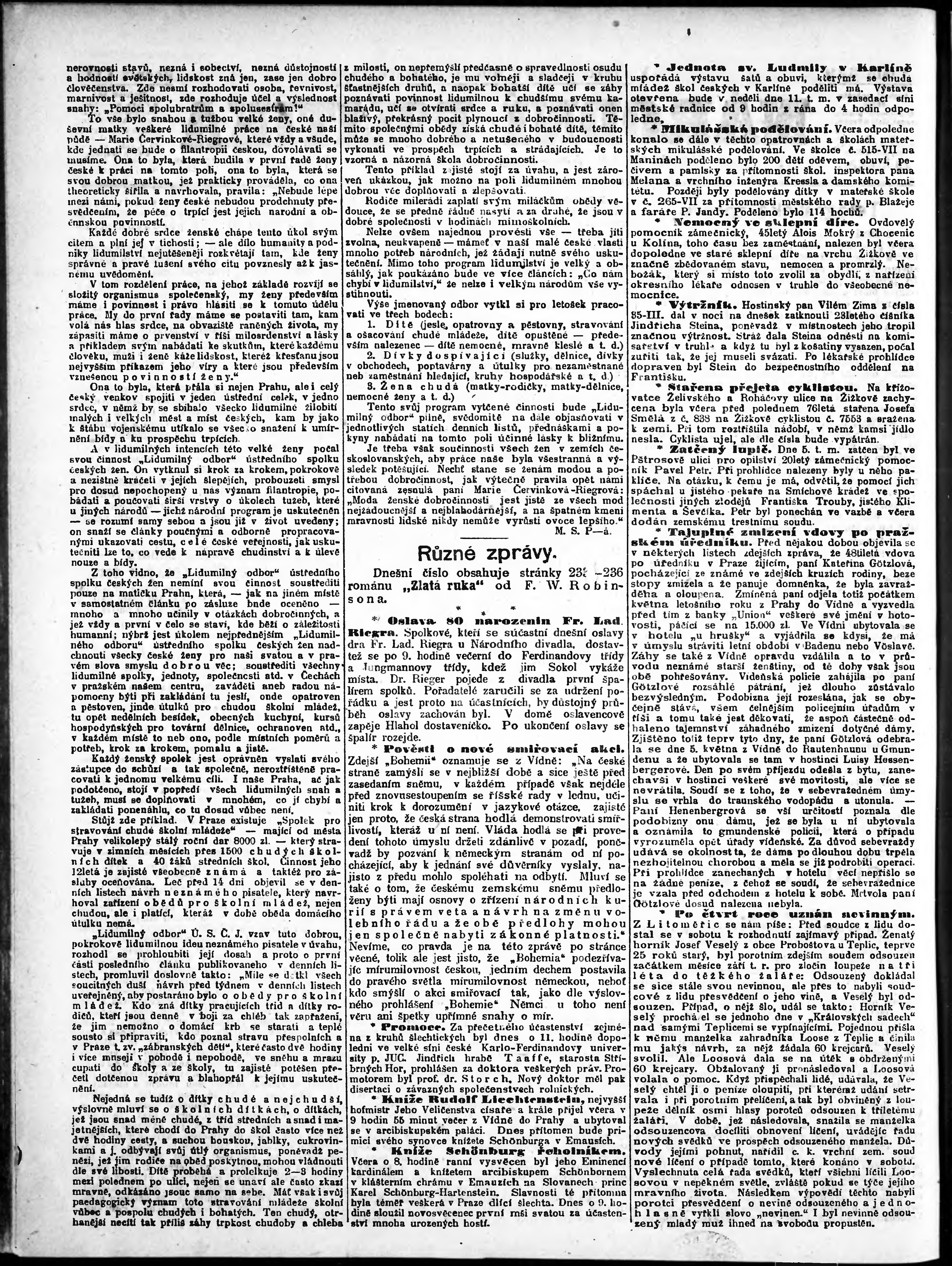 * Datum vydání výtisku: 9.12.1898 Číslo výtisku: 339 Poznámky k výtisku: odpolední vydání;