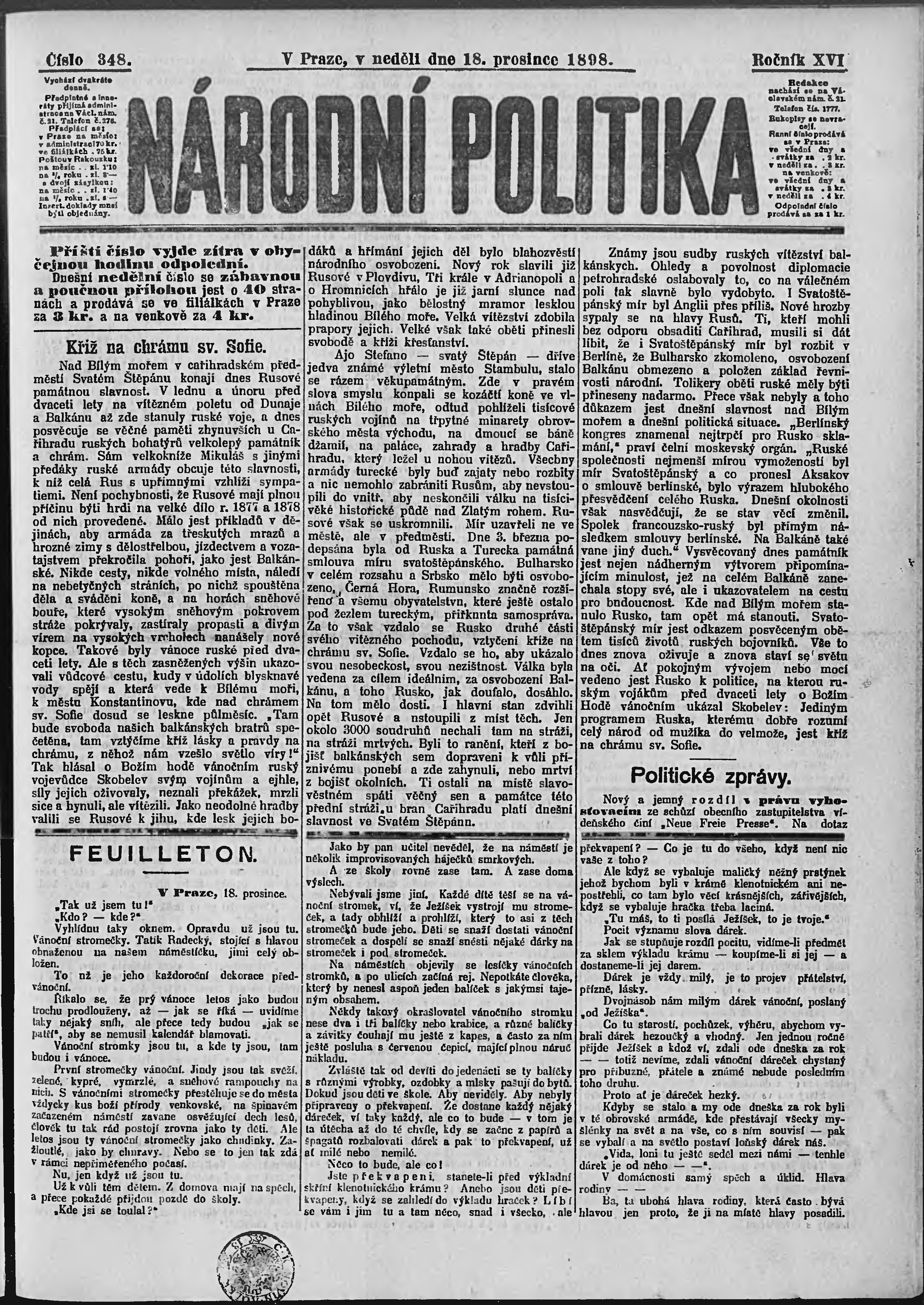 * Datum vydání výtisku: 18.12.1898 Číslo výtisku: 348 Poznámky k výtisku: ranní vydání;