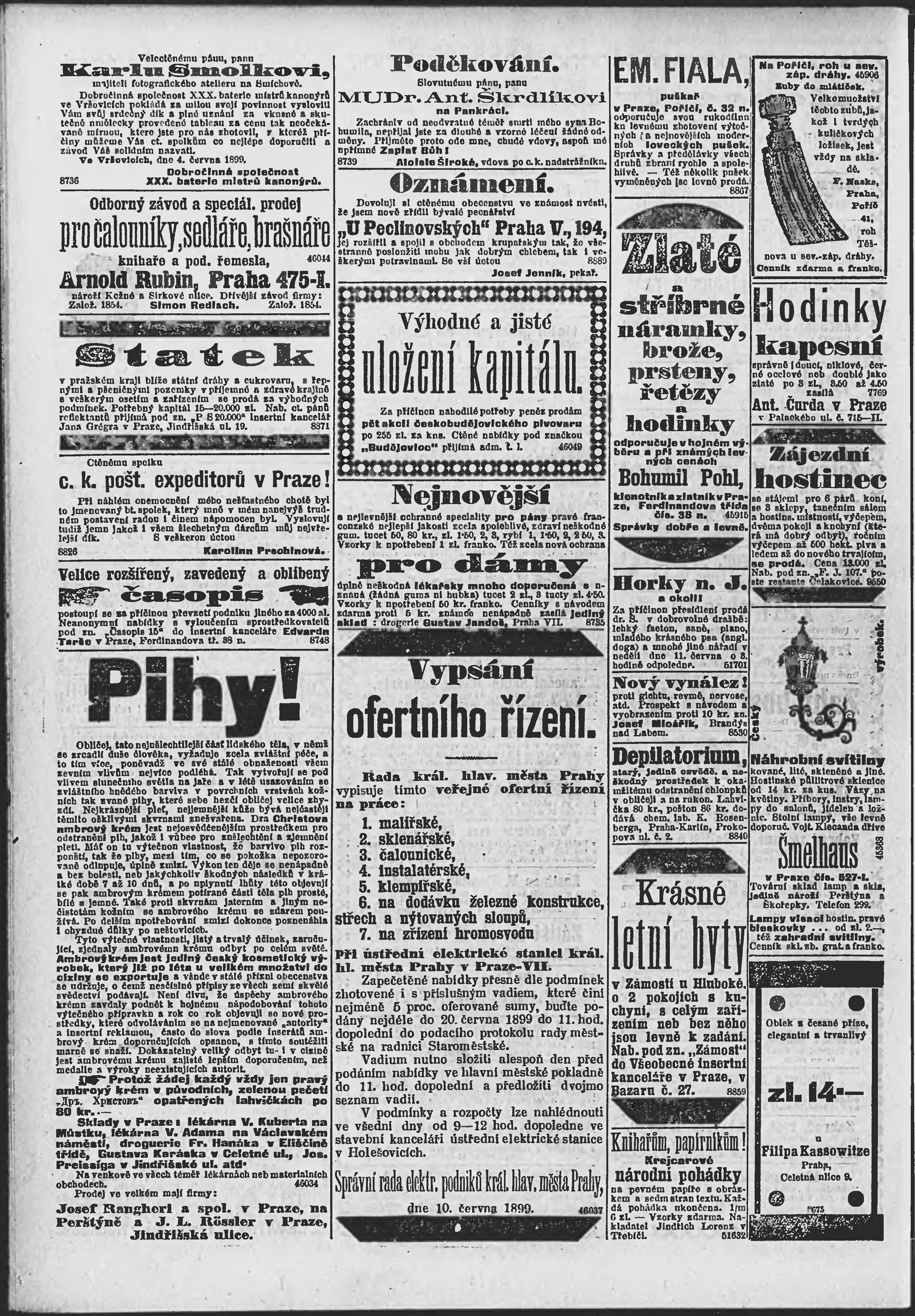 * Datum vydání výtisku: 11.6.1899 Číslo výtisku: 160 Poznámky k výtisku: ranní vydání;