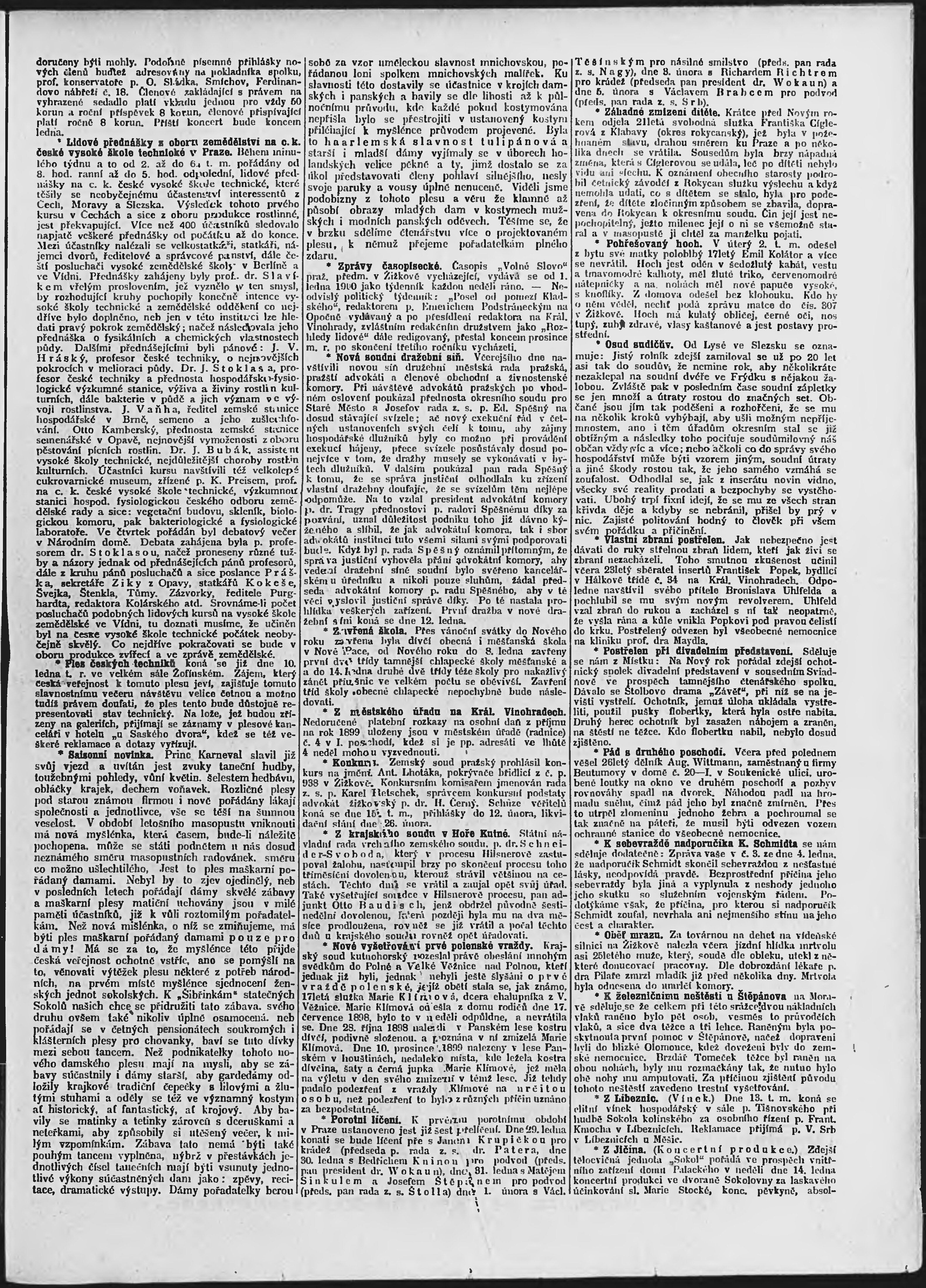 * Datum vydání výtisku: 9.1.1900 Číslo výtisku: 8 Poznámky k výtisku: ranní vydání;