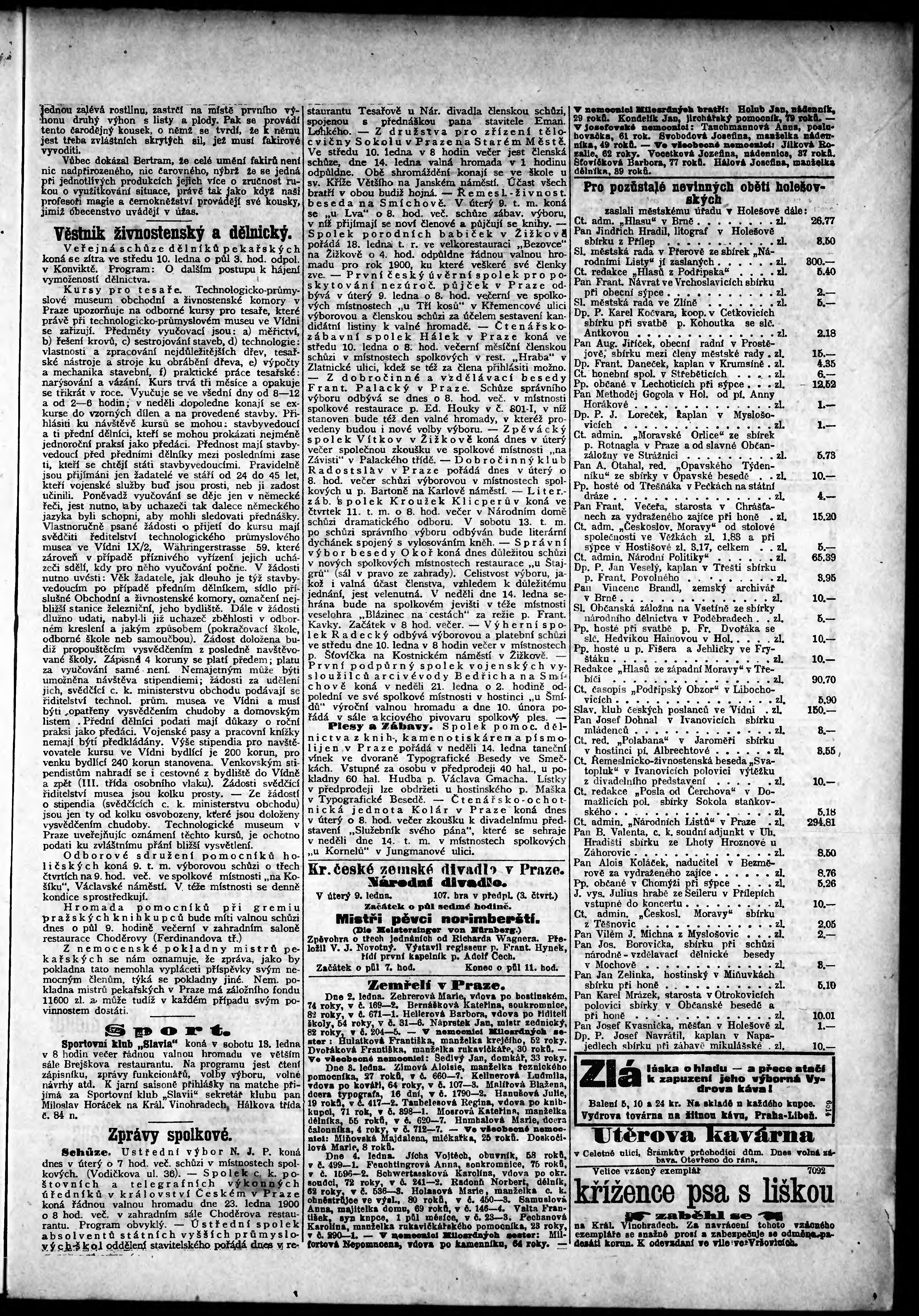 * Datum vydání výtisku: 9.1.1900 Číslo výtisku: 8 Poznámky k výtisku: odpolední vydání;