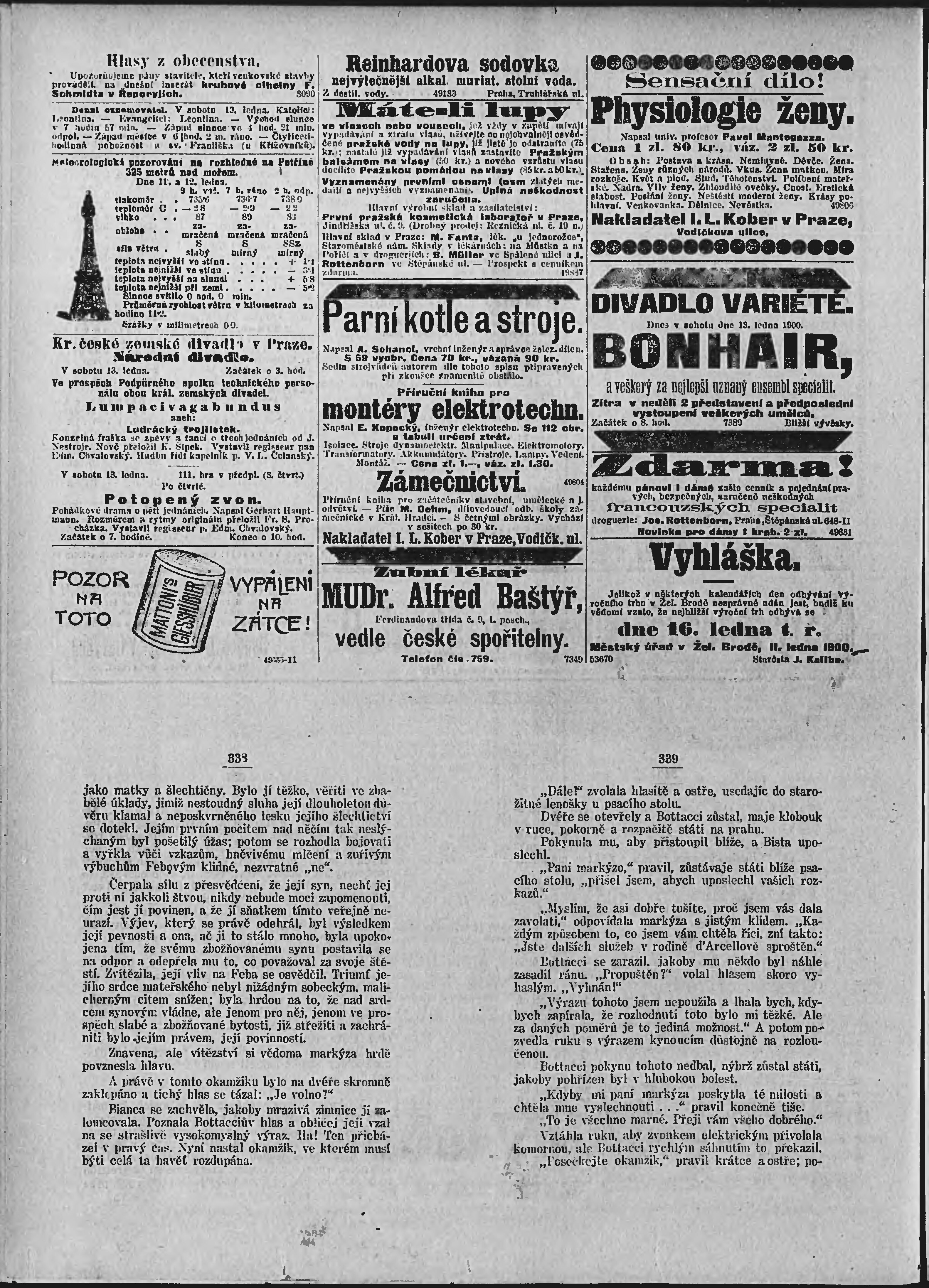 * Datum vydání výtisku: 13.1.1900 Číslo výtisku: 12 Poznámky k výtisku: ranní vydání;