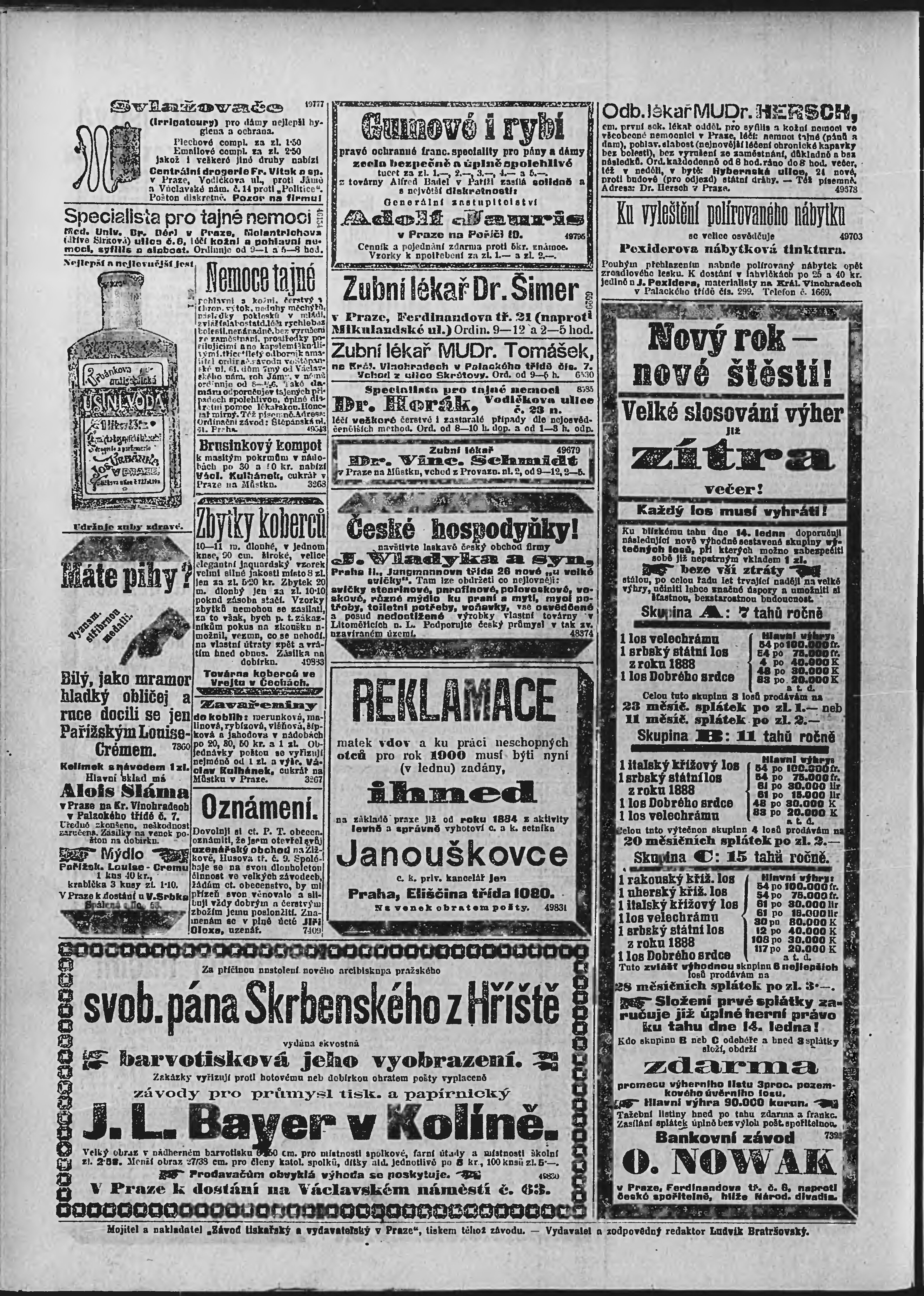 * Datum vydání výtisku: 13.1.1900 Číslo výtisku: 12 Poznámky k výtisku: ranní vydání;