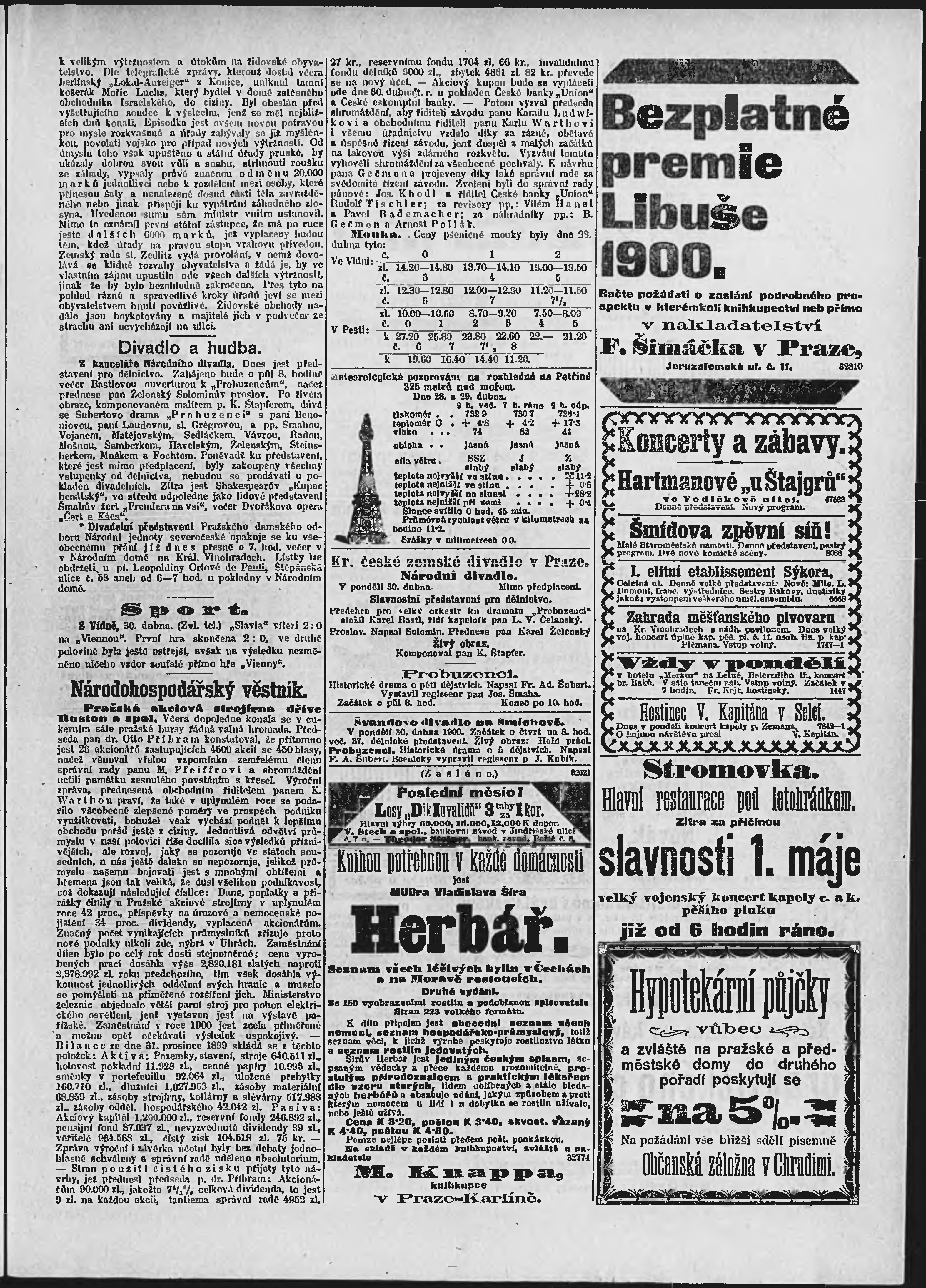 * Datum vydání výtisku: 30.4.1900 Číslo výtisku: 118 Poznámky k výtisku: ranní vydání;