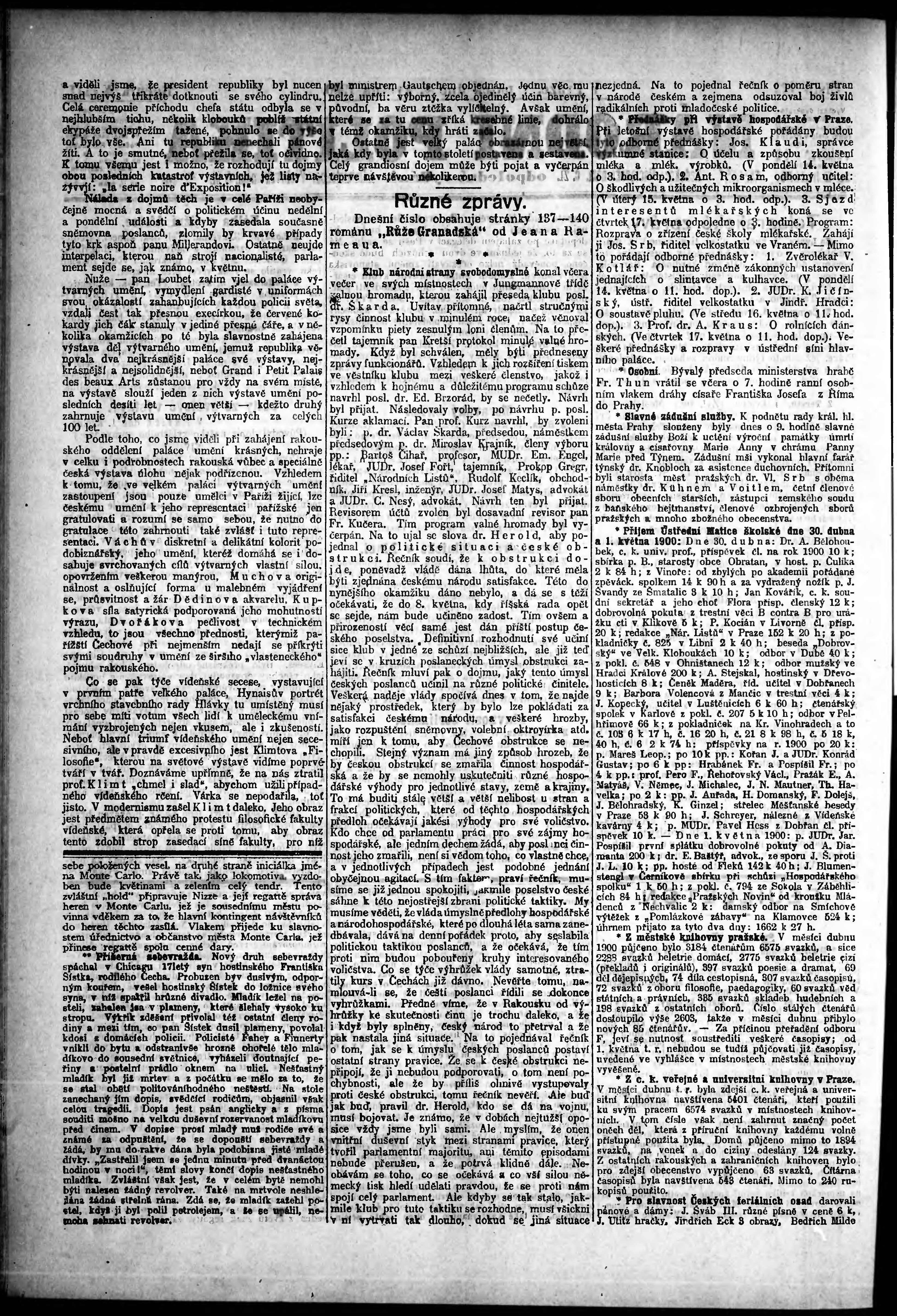 * Datum vydání výtisku: 4.5.1900 Číslo výtisku: 122 Poznámky k výtisku: odpolední vydání;