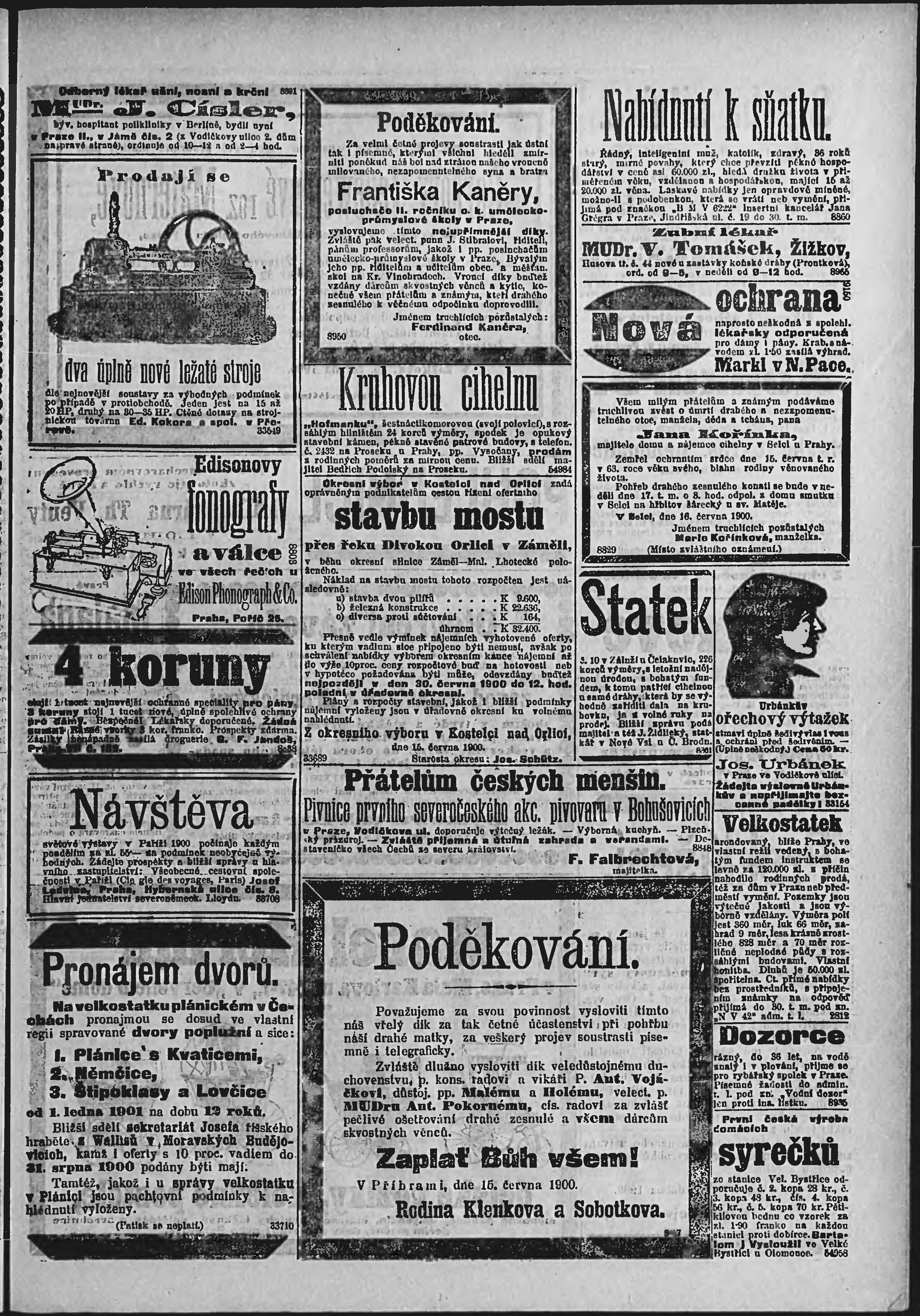 * Datum vydání výtisku: 17.6.1900 Číslo výtisku: 165 Poznámky k výtisku: ranní vydání;