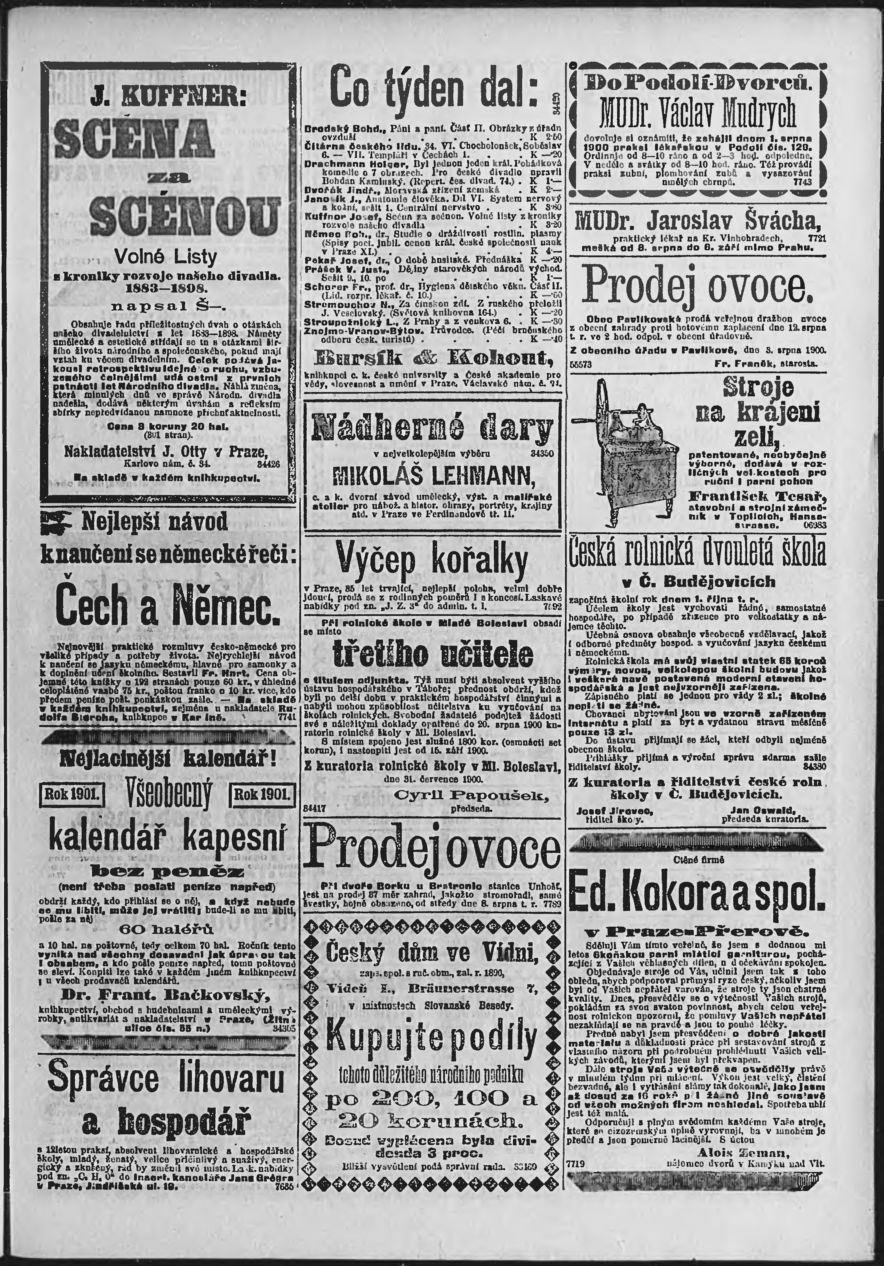 * Datum vydání výtisku: 5.8.1900 Číslo výtisku: 214 Poznámky k výtisku: ranní vydání;