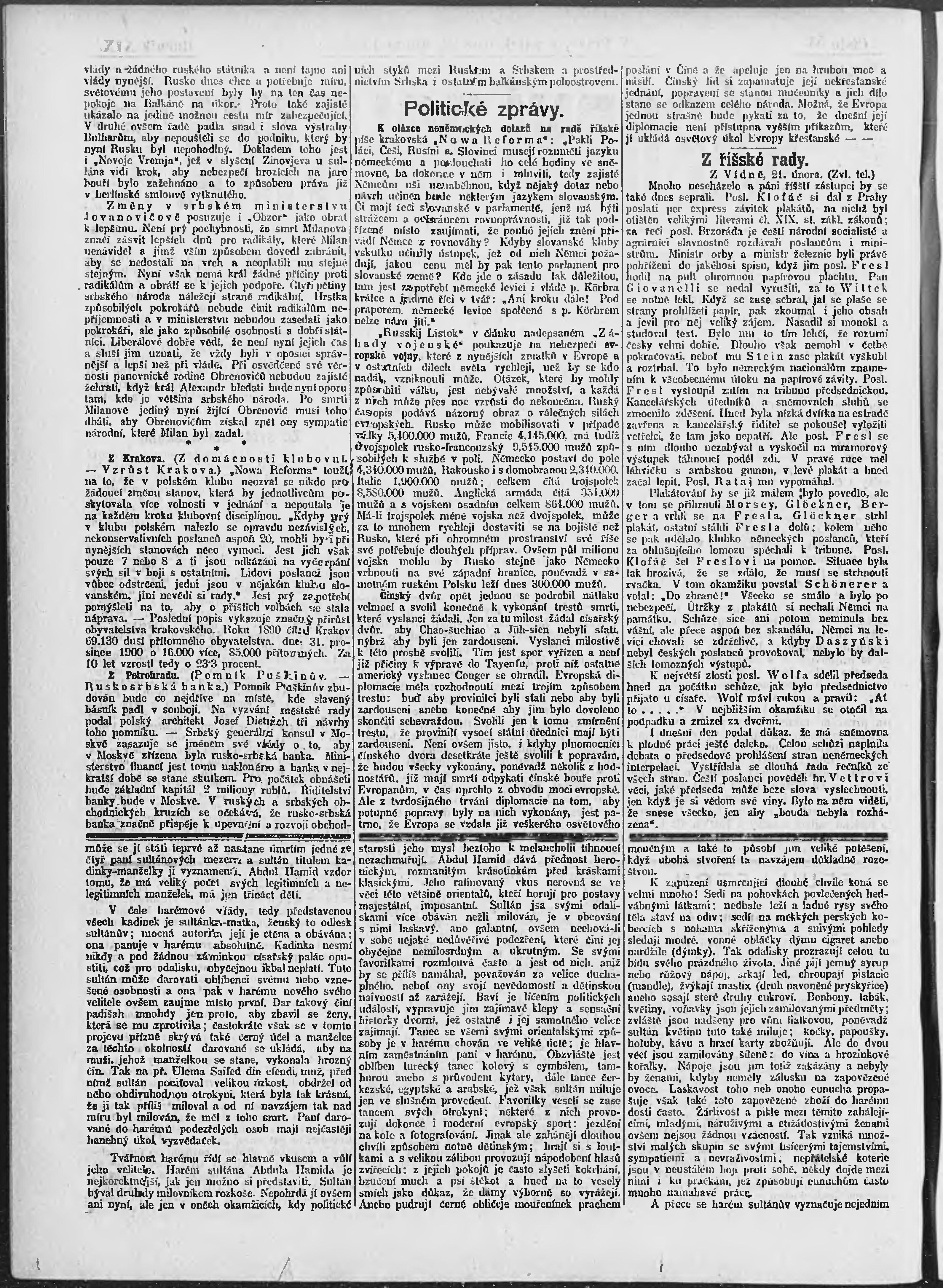 * Datum vydání výtisku: 22.2.1901 Číslo výtisku: 53 Poznámky k výtisku: ranní vydání;