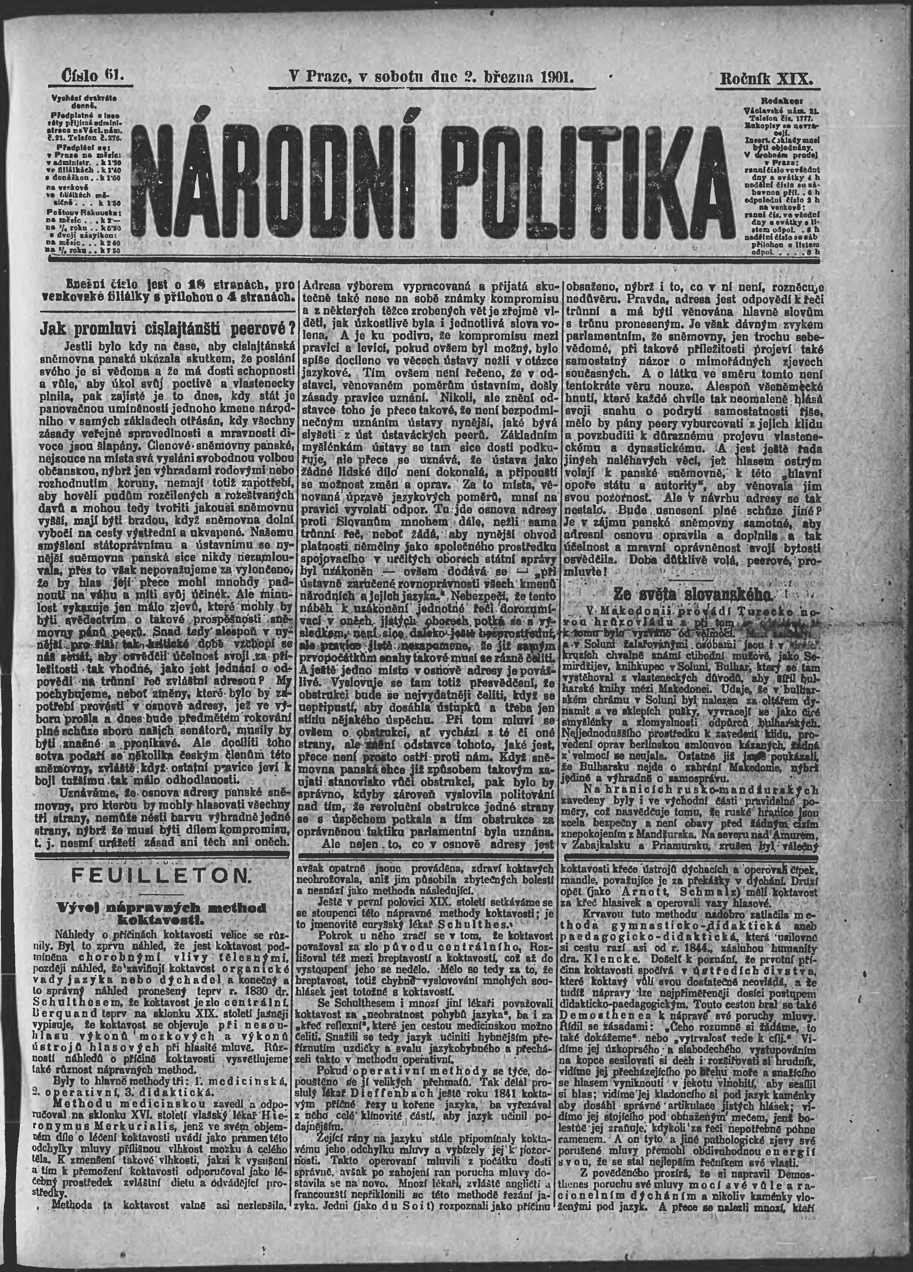 * Datum vydání výtisku: 2.3.1901 Číslo výtisku: 61 Poznámky k výtisku: ranní vydání;