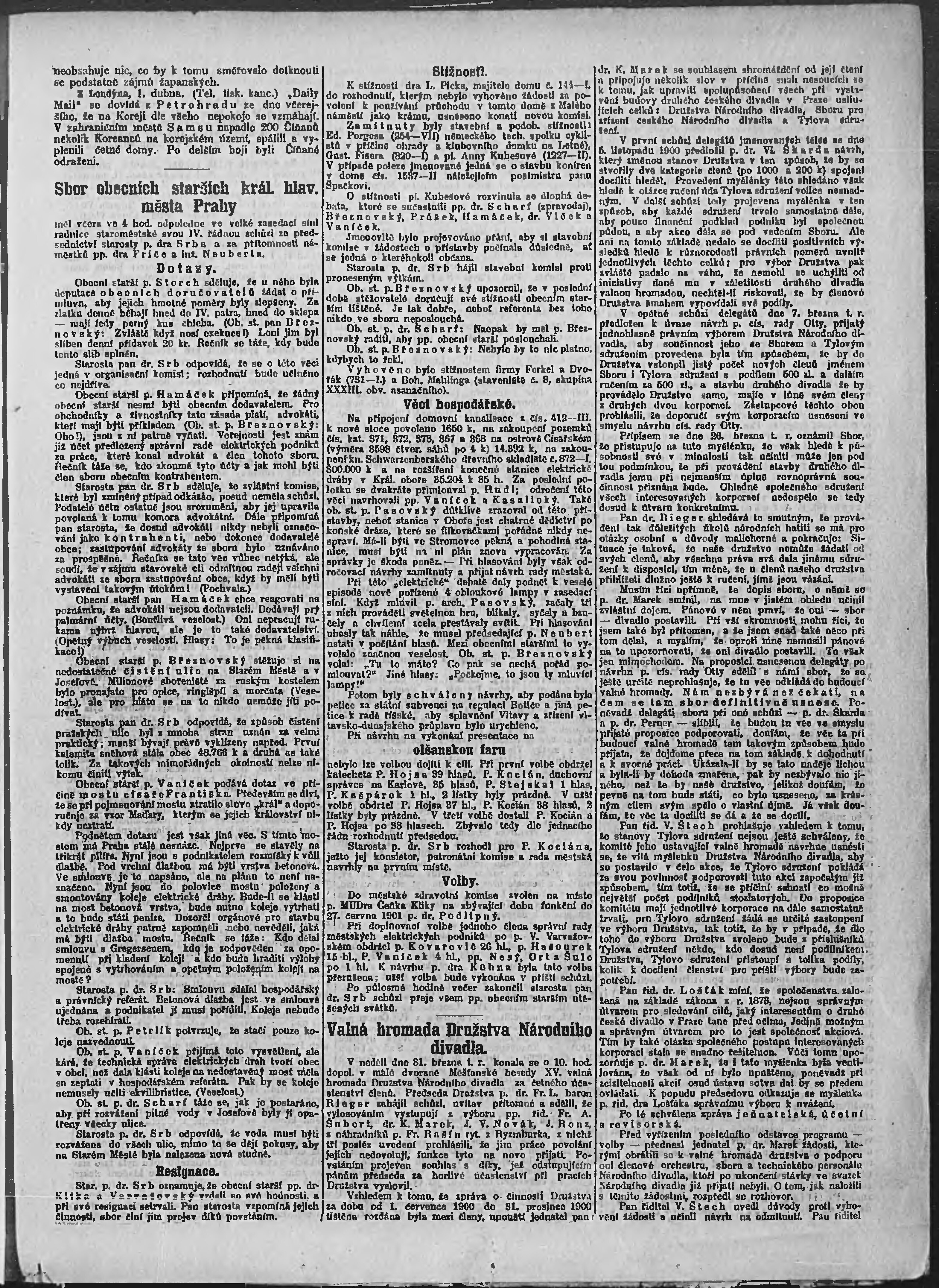 * Datum vydání výtisku: 2.4.1901 Číslo výtisku: 91 Poznámky k výtisku: ranní vydání;