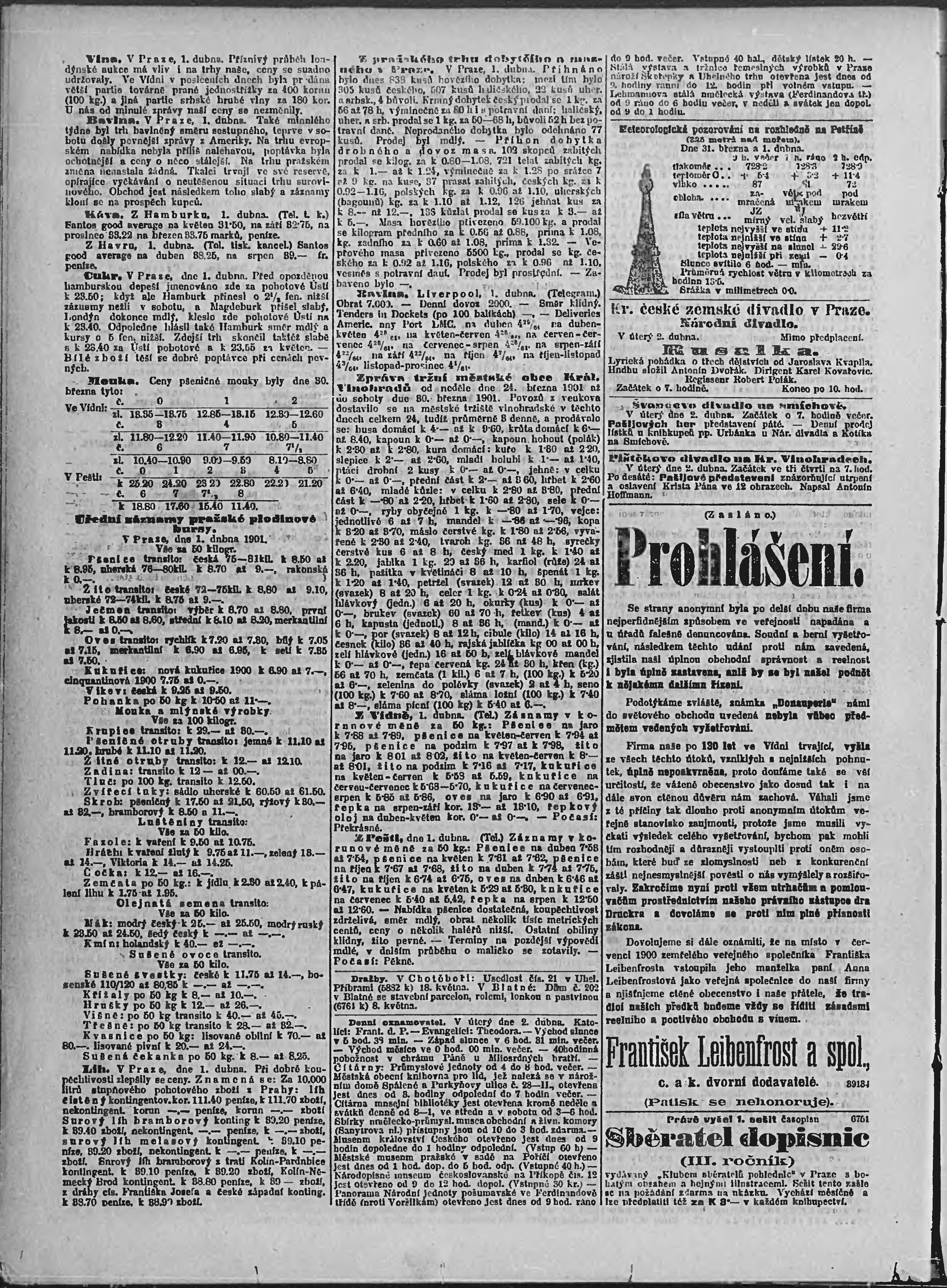 * Datum vydání výtisku: 2.4.1901 Číslo výtisku: 91 Poznámky k výtisku: ranní vydání;