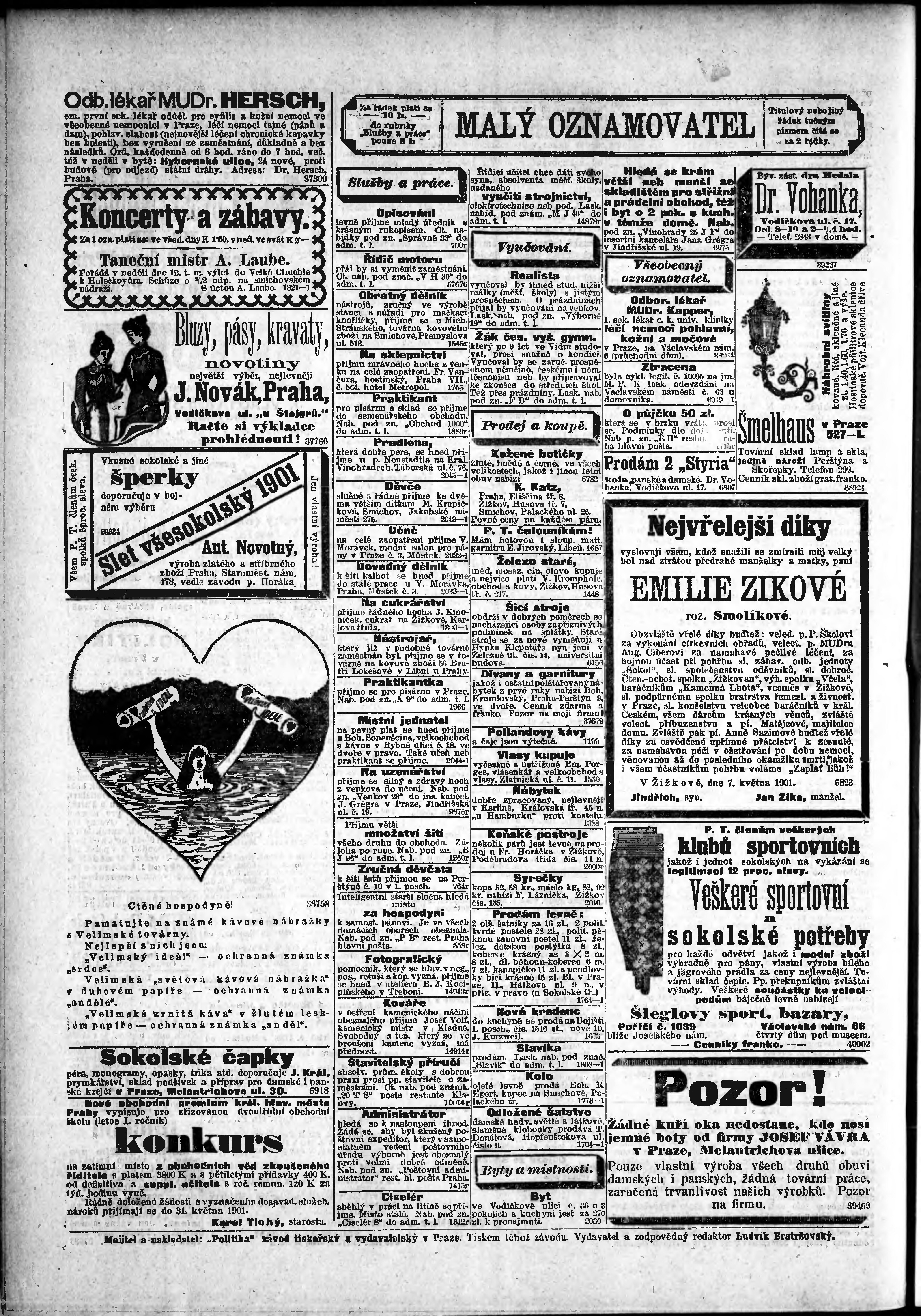 * Datum vydání výtisku: 8.5.1901 Číslo výtisku: 126 Poznámky k výtisku: odpolední vydání;