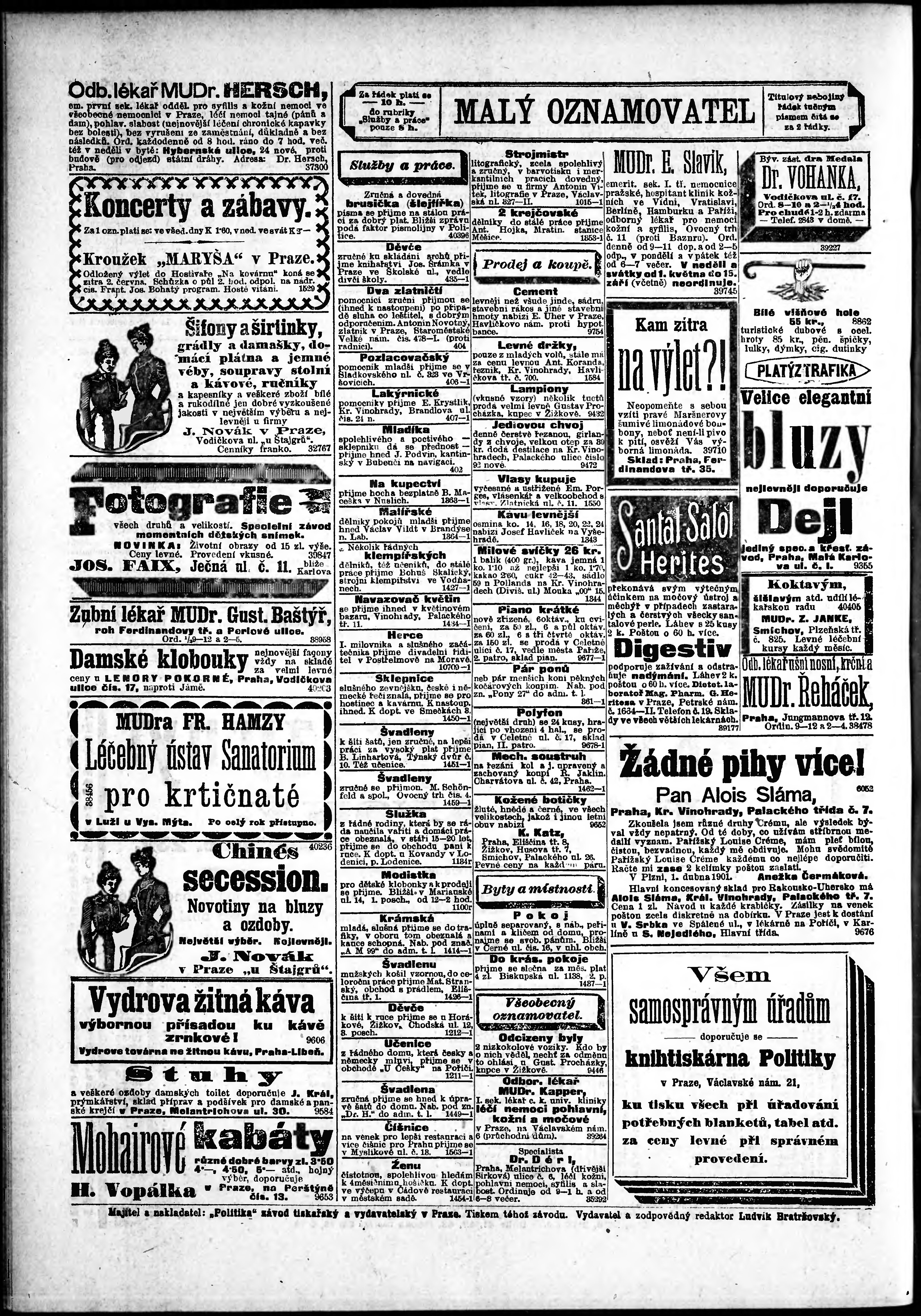 * Datum vydání výtisku: 1.6.1901 Číslo výtisku: 149 Poznámky k výtisku: odpolední vydání;