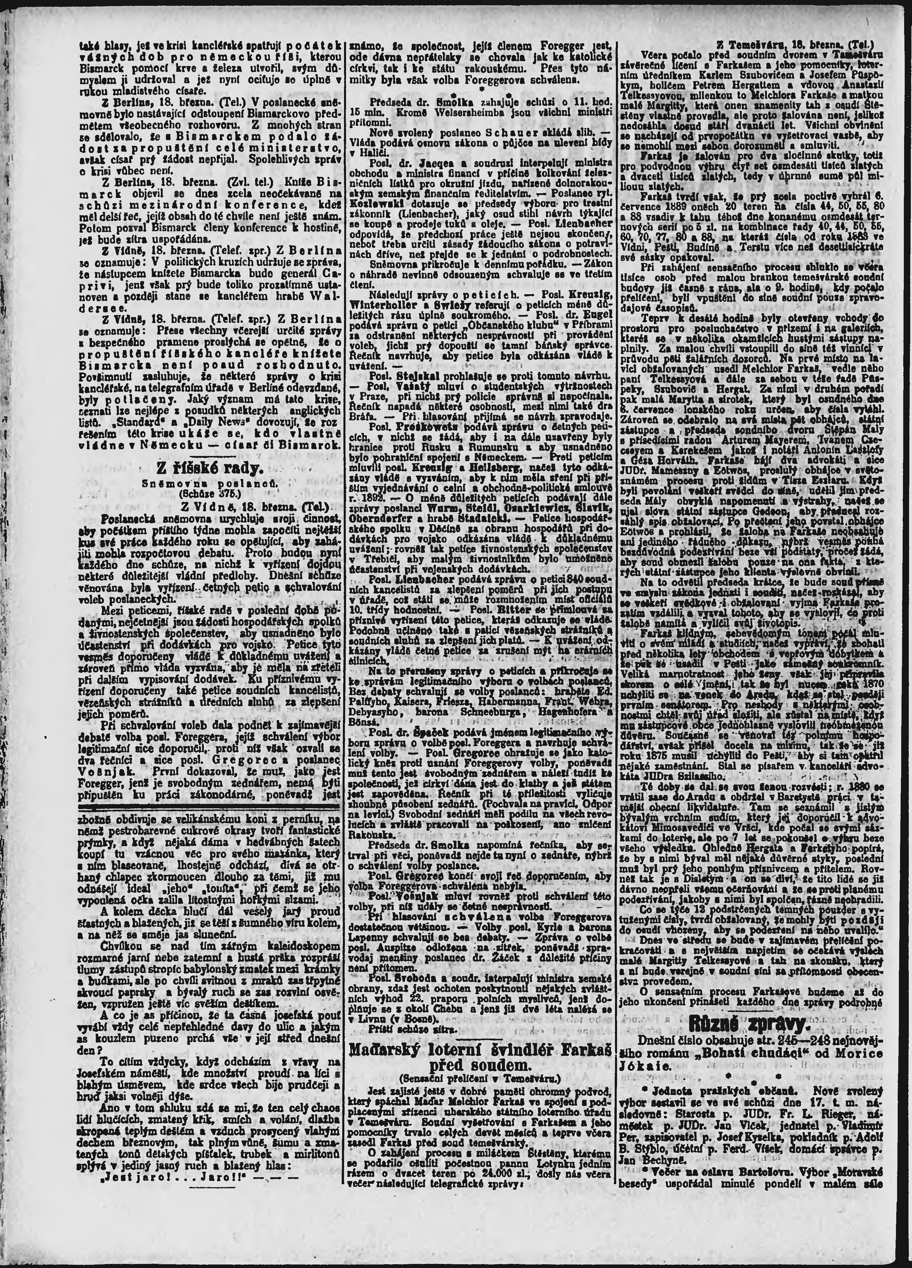 * Datum vydání výtisku: 19.3.1890 Číslo výtisku: 77 Poznámky k výtisku: ranní vydání;