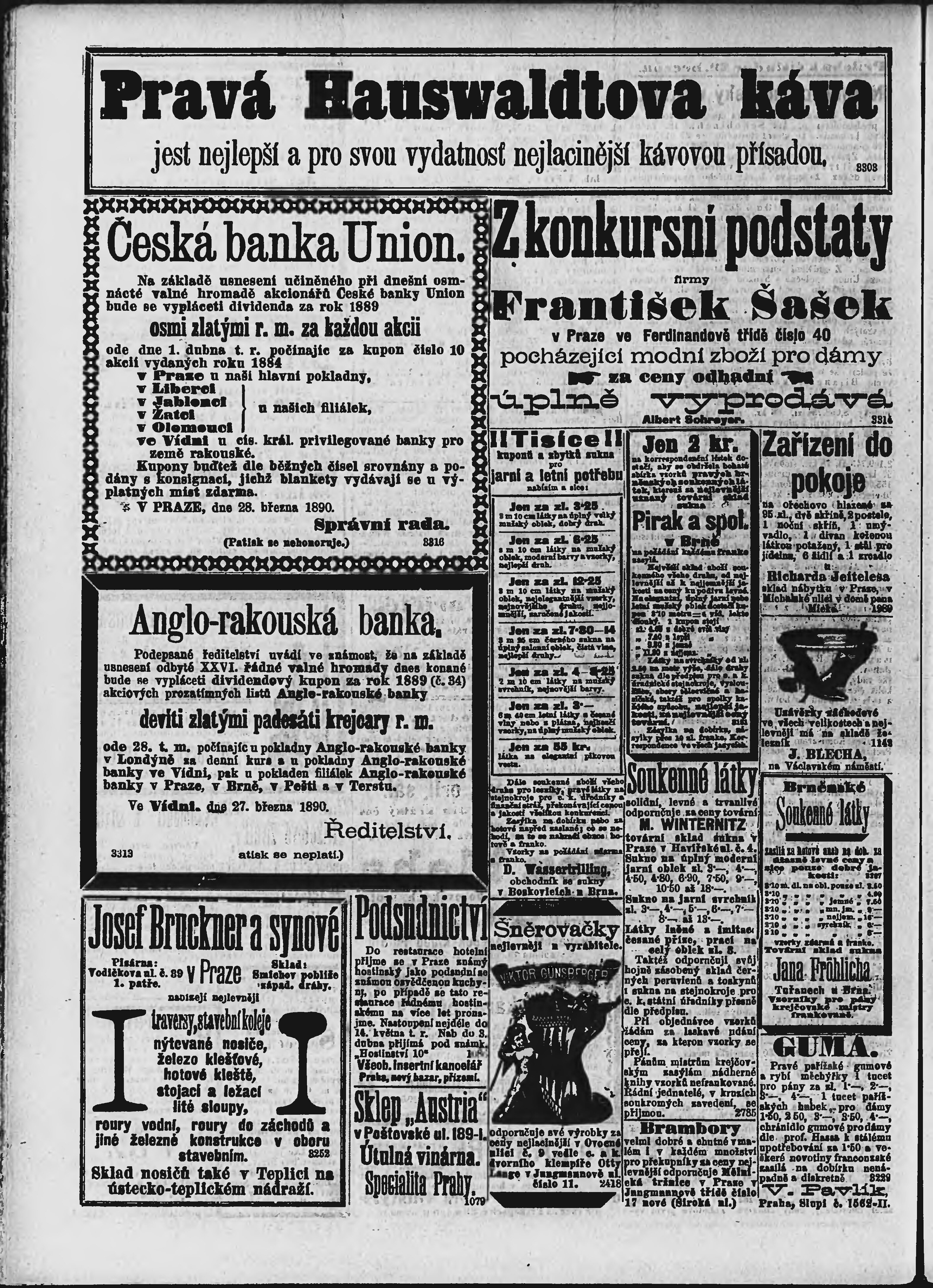 * Datum vydání výtisku: 29.3.1890 Číslo výtisku: 87 Poznámky k výtisku: ranní vydání;