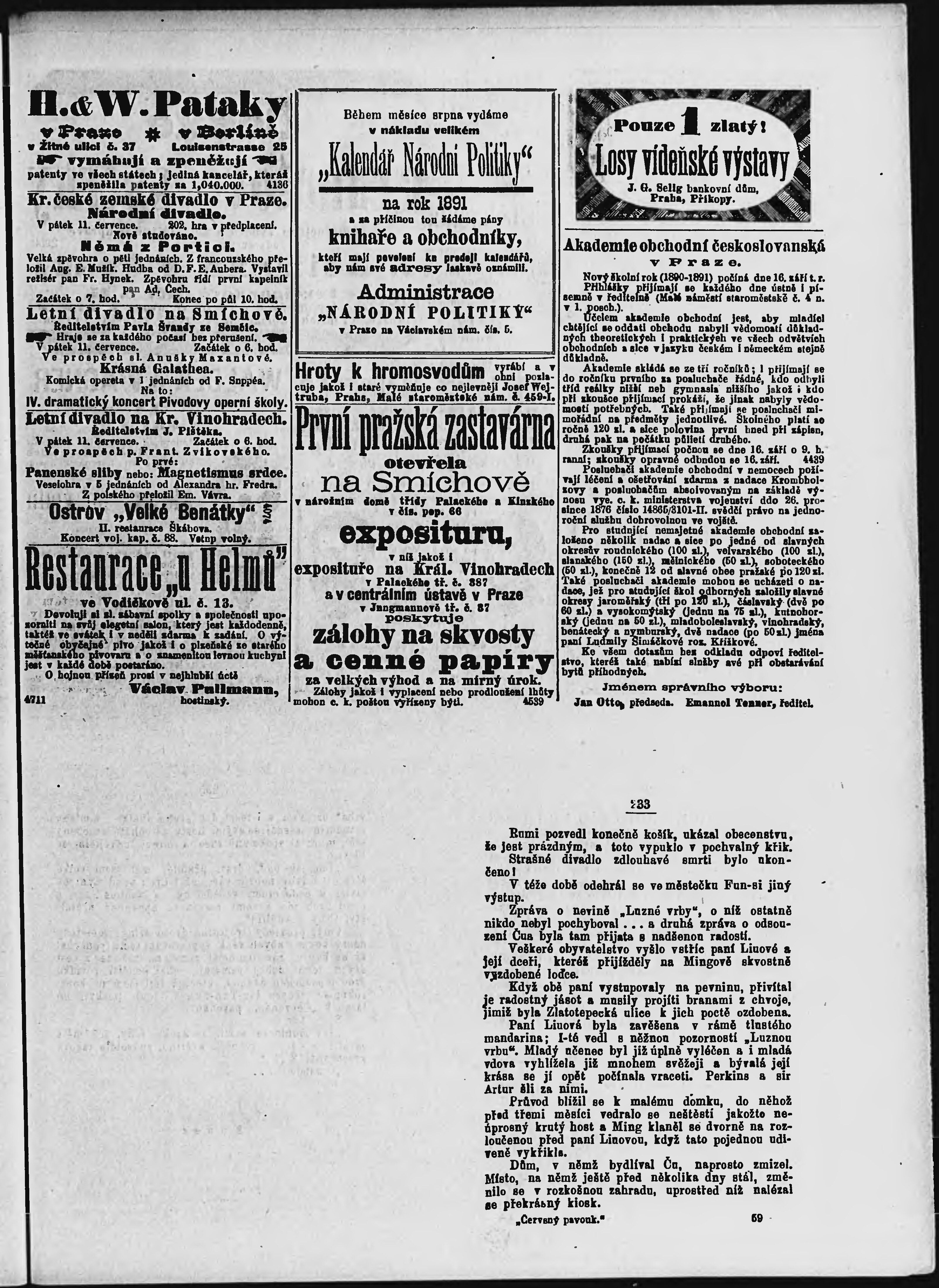 * Datum vydání výtisku: 11.7.1890 Číslo výtisku: 188 Poznámky k výtisku: ranní vydání;