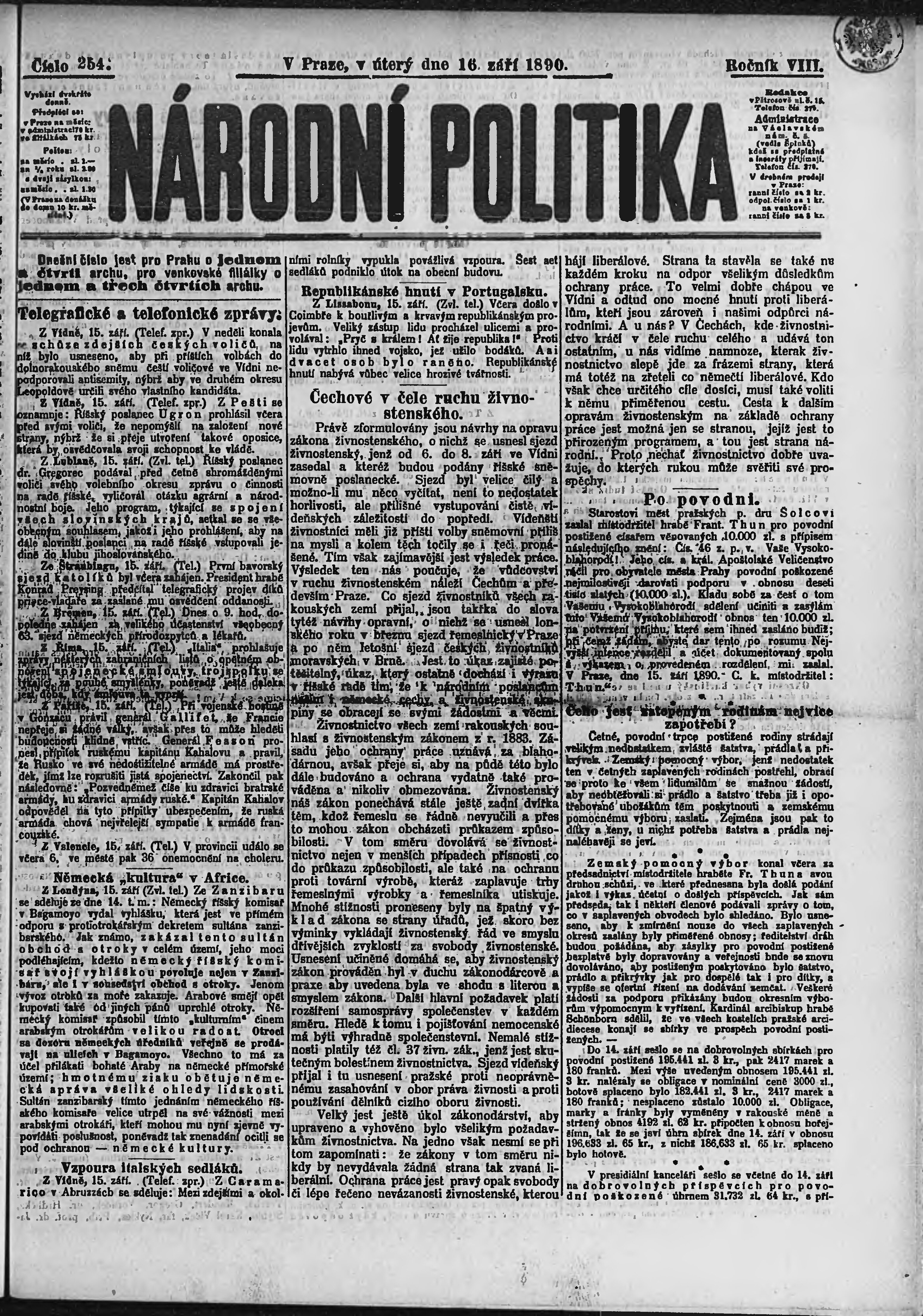 * Datum vydání výtisku: 16.9.1890 Číslo výtisku: 254 Poznámky k výtisku: ranní vydání;
