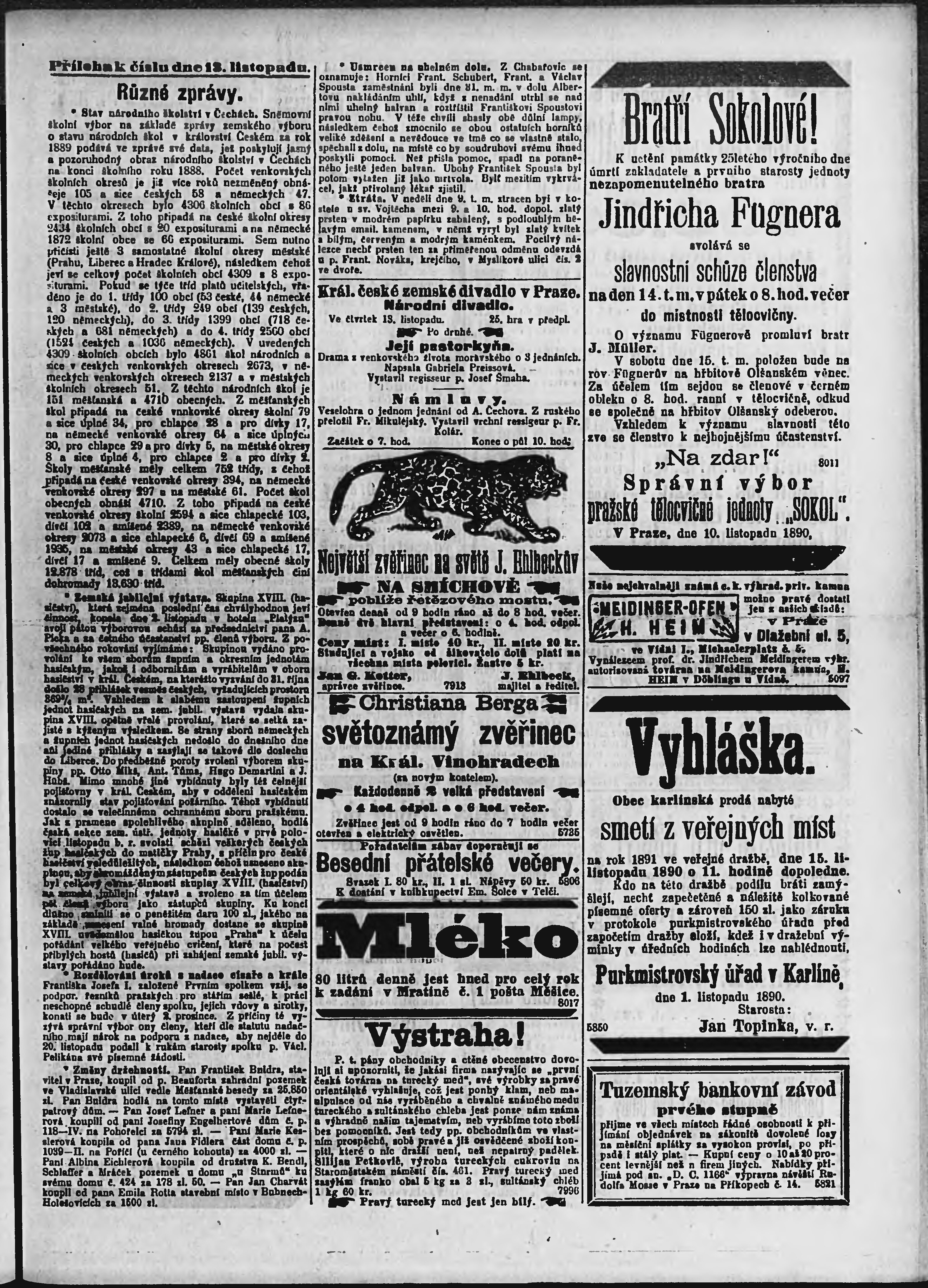 * Datum vydání výtisku: 13.11.1890 Číslo výtisku: 312 Poznámky k výtisku: ranní vydání;