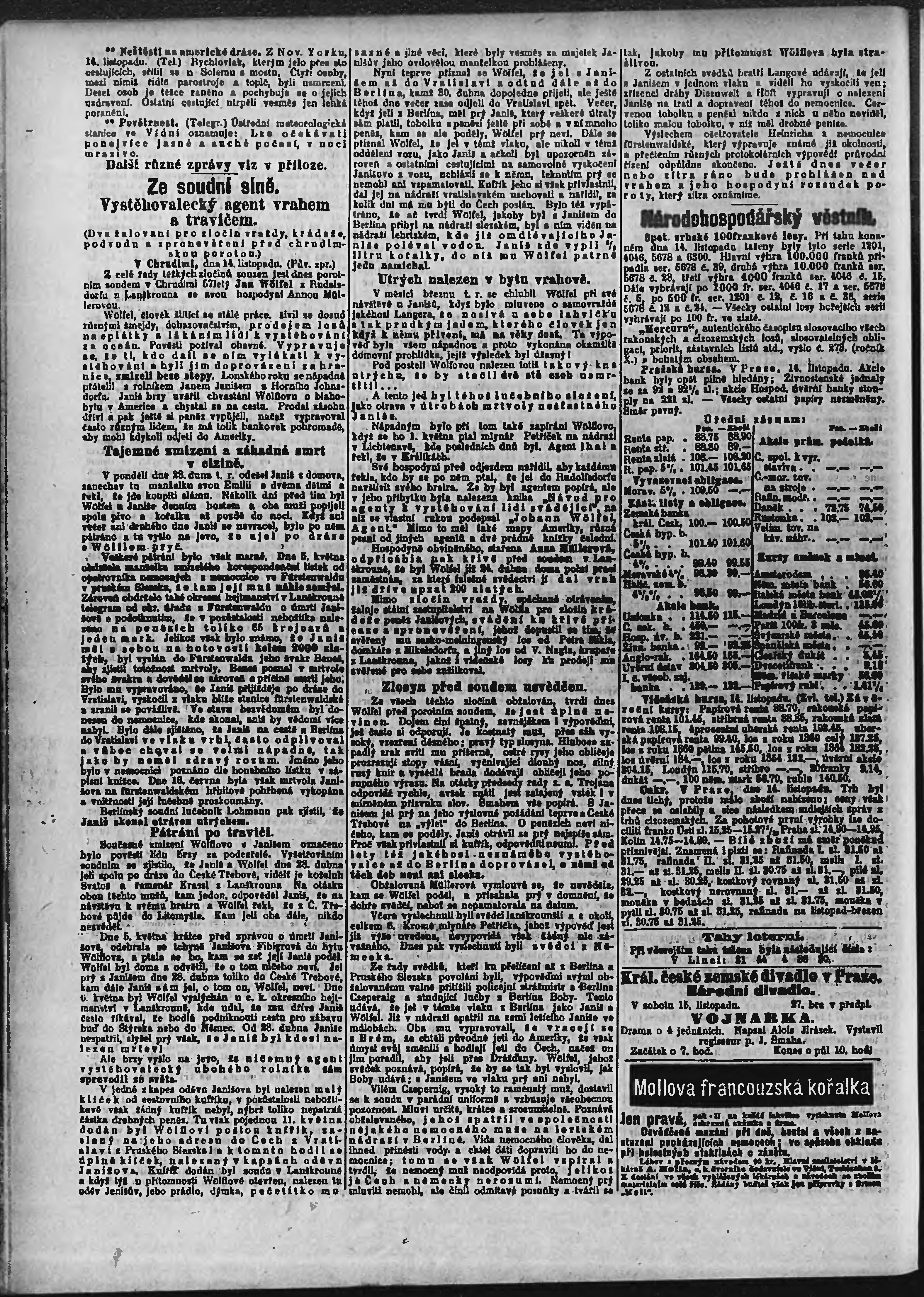 * Datum vydání výtisku: 15.11.1890 Číslo výtisku: 314 Poznámky k výtisku: ranní vydání;