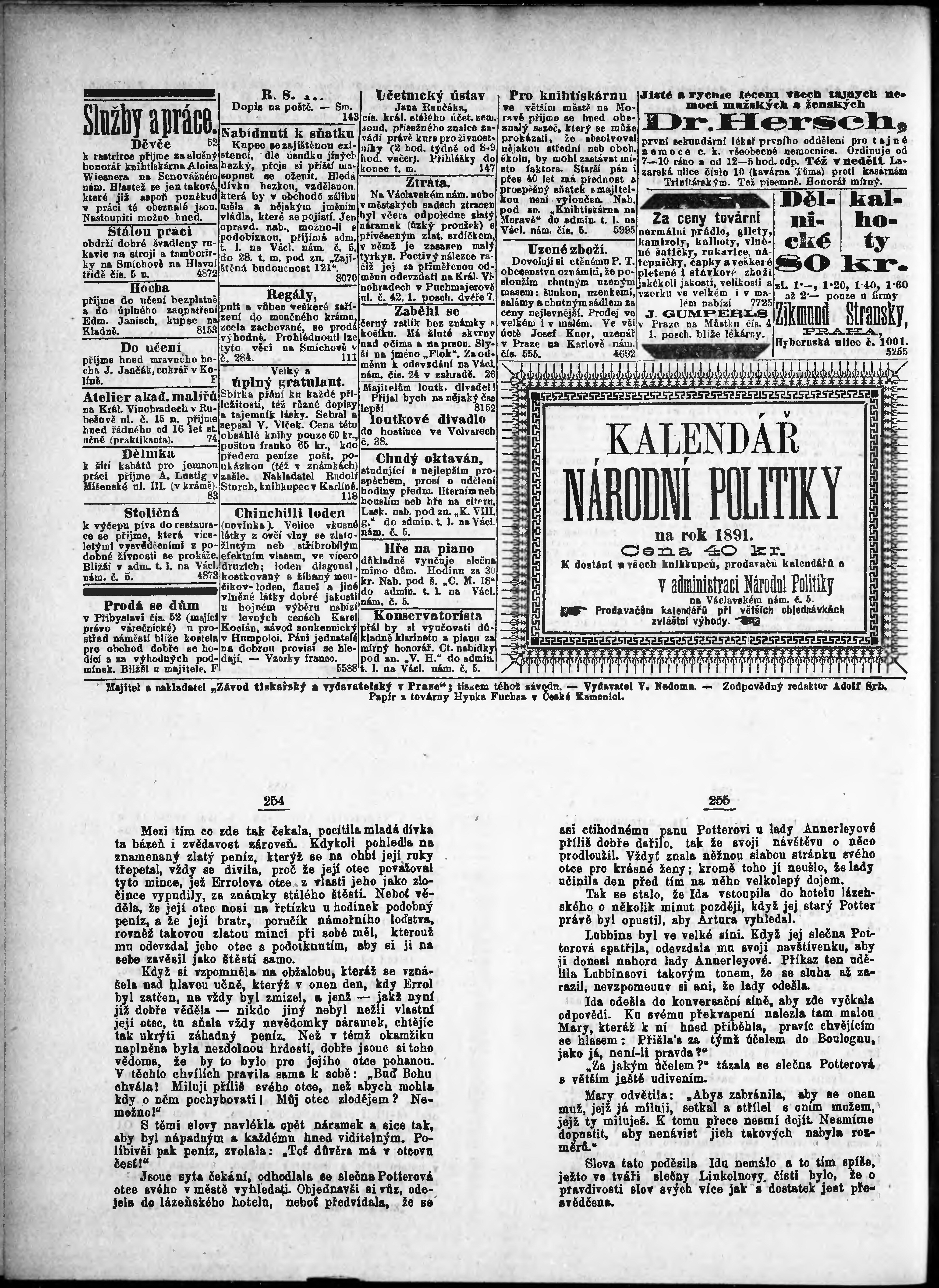 * Datum vydání výtisku: 19.11.1890 Číslo výtisku: 318 Poznámky k výtisku: odpolední vydání;