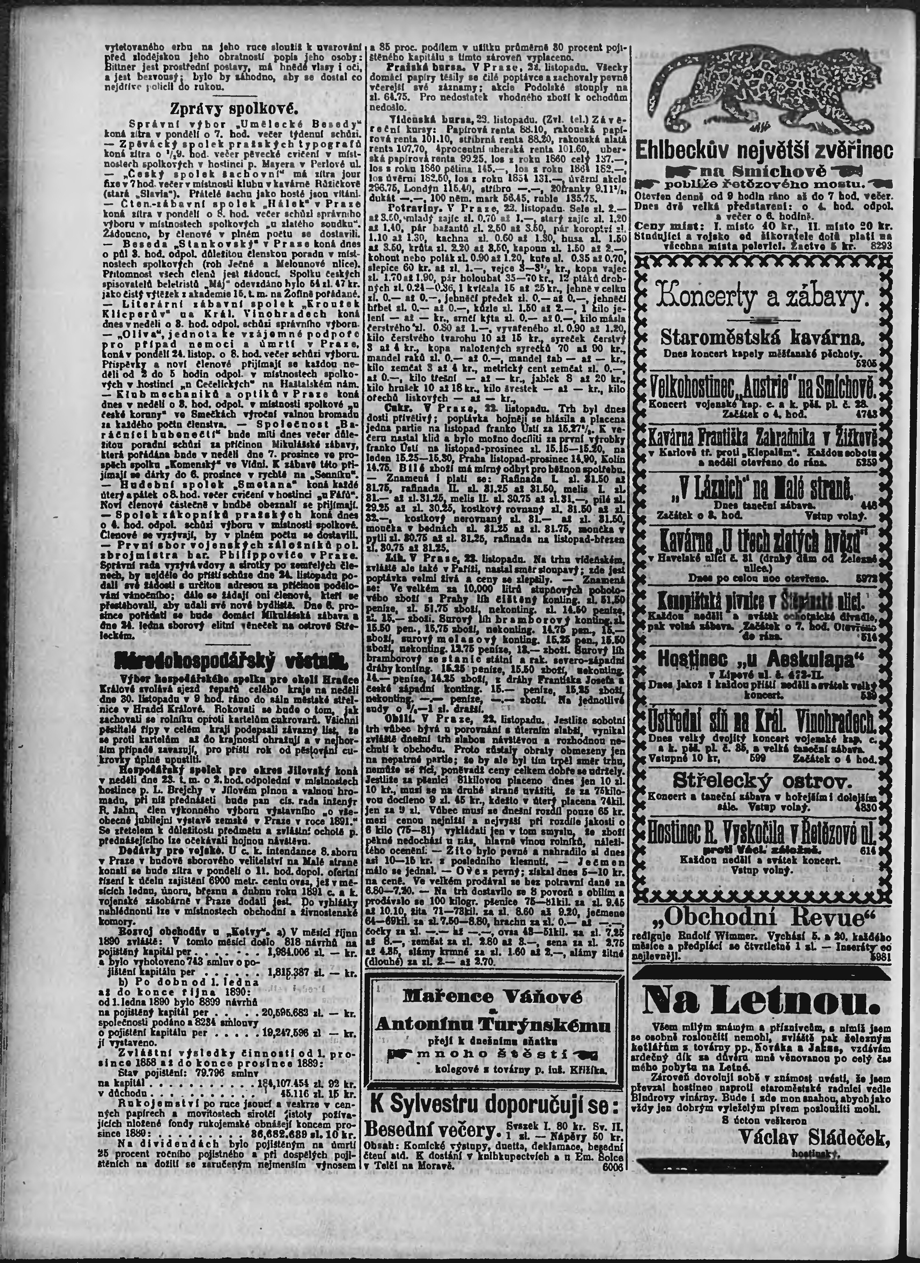 * Datum vydání výtisku: 23.11.1890 Číslo výtisku: 322 Poznámky k výtisku: ranní vydání;