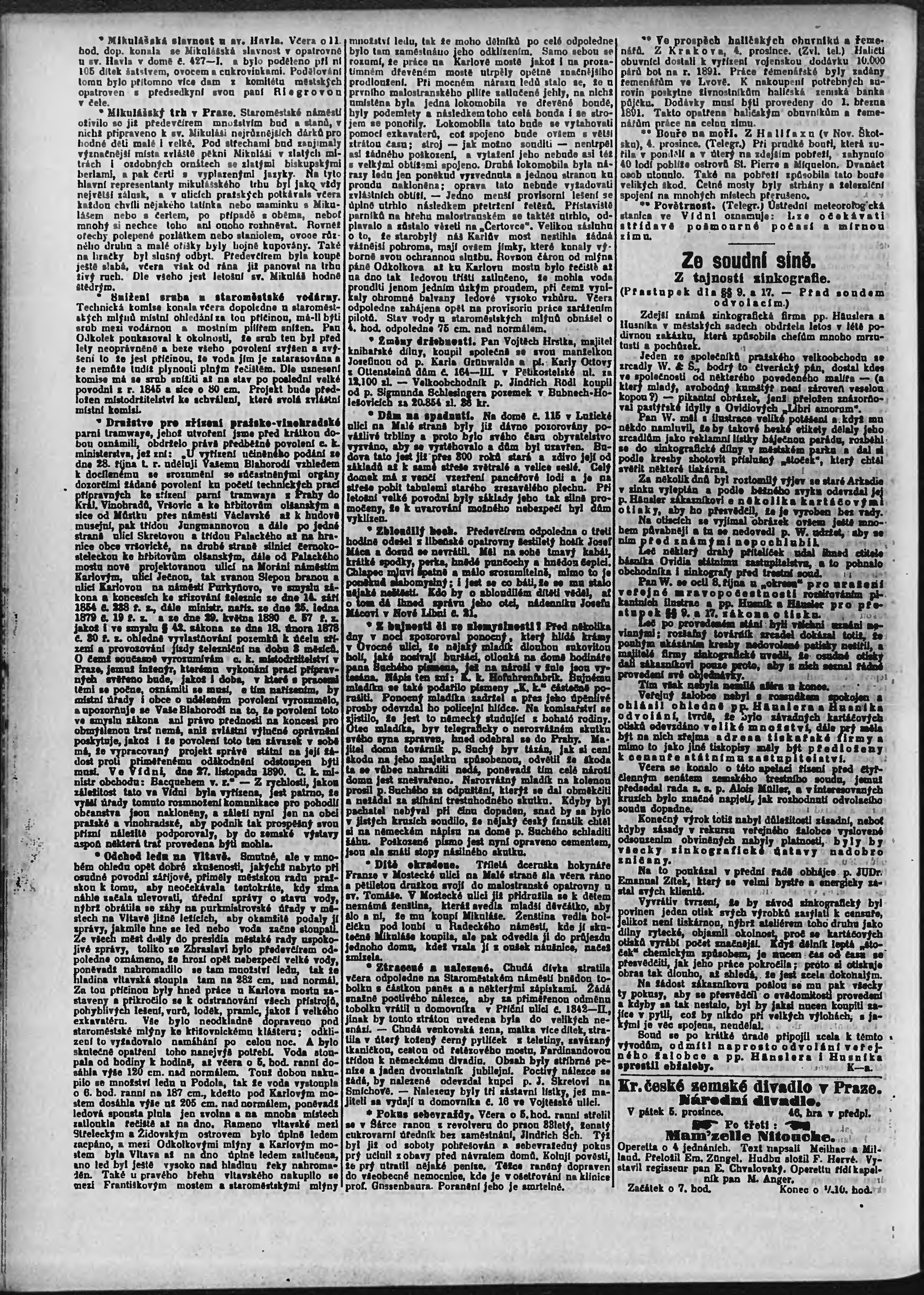 * Datum vydání výtisku: 5.12.1890 Číslo výtisku: 334 Poznámky k výtisku: ranní vydání;
