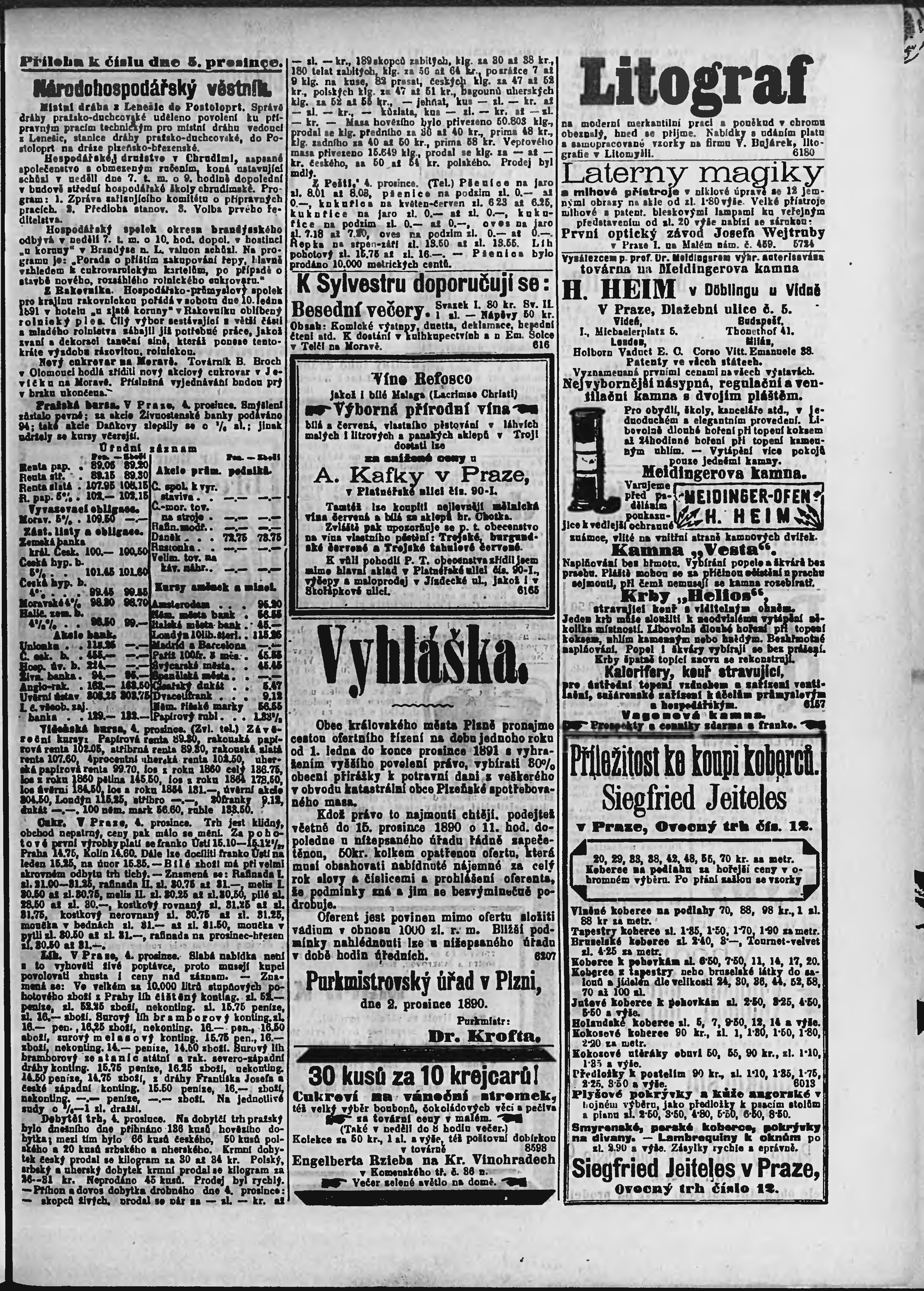 * Datum vydání výtisku: 5.12.1890 Číslo výtisku: 334 Poznámky k výtisku: ranní vydání;