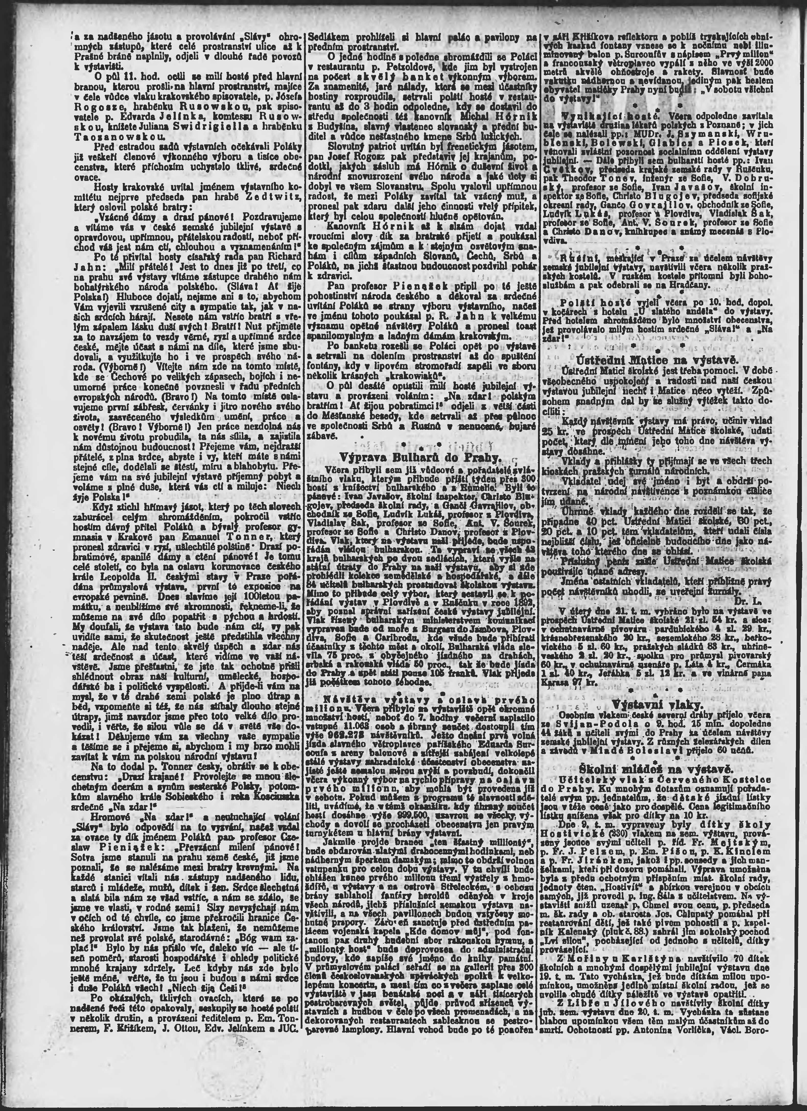 * Datum vydání výtisku: 23.7.1891 Číslo výtisku: 200 Poznámky k výtisku: ranní vydání;