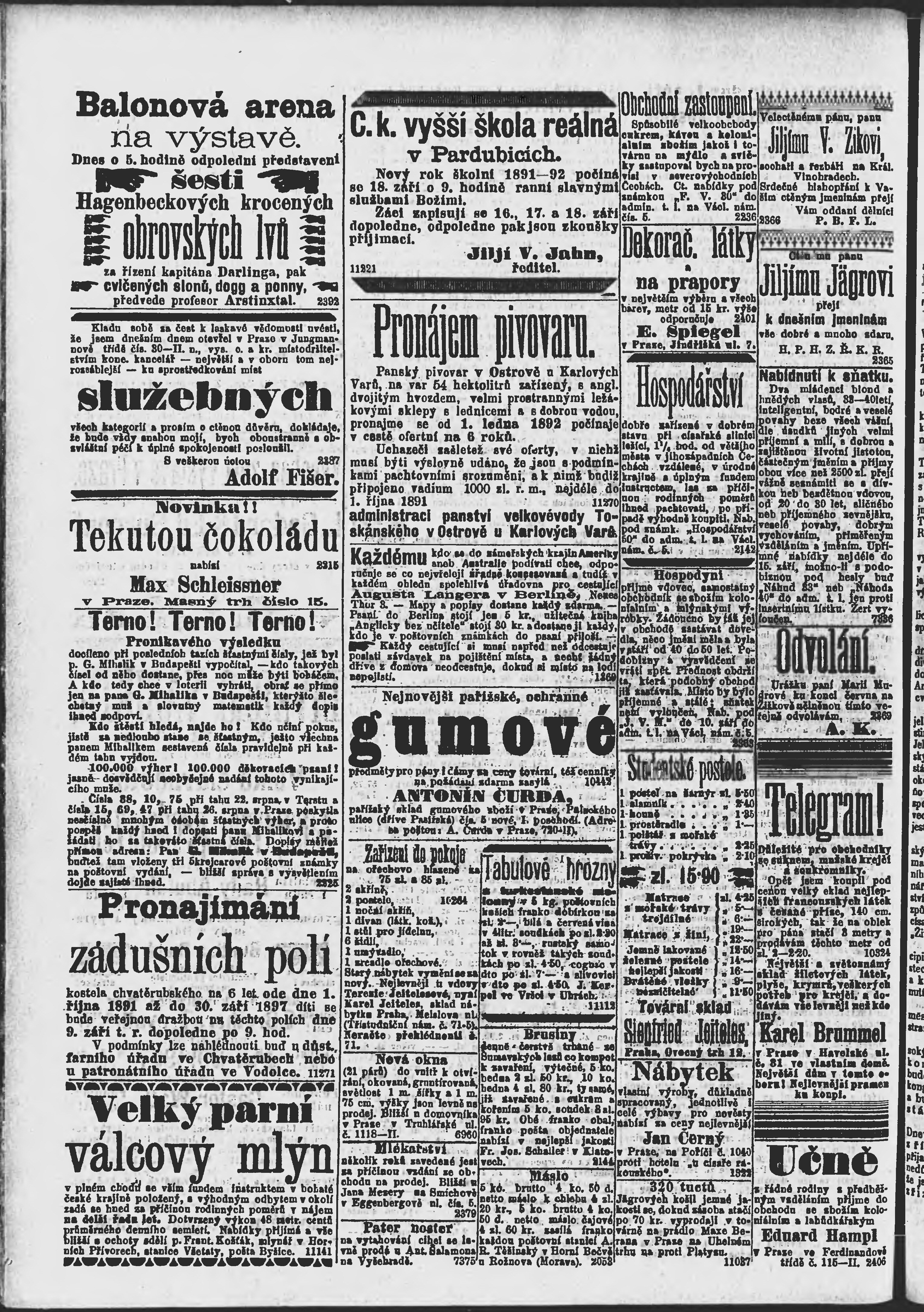 * Datum vydání výtisku: 31.8.1891 Číslo výtisku: 239 Poznámky k výtisku: ranní vydání;
