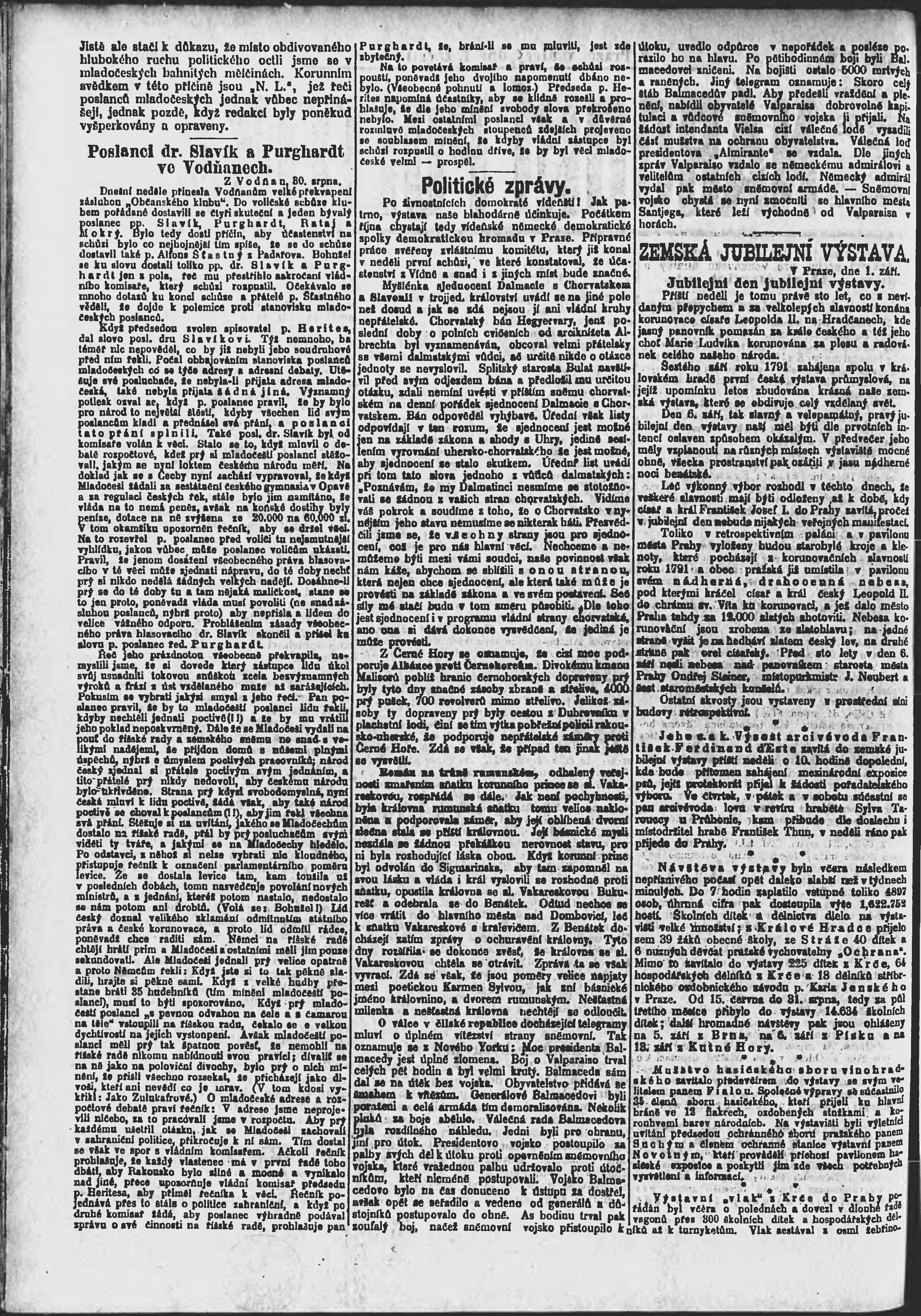 * Datum vydání výtisku: 1.9.1891 Číslo výtisku: 240 Poznámky k výtisku: ranní vydání;