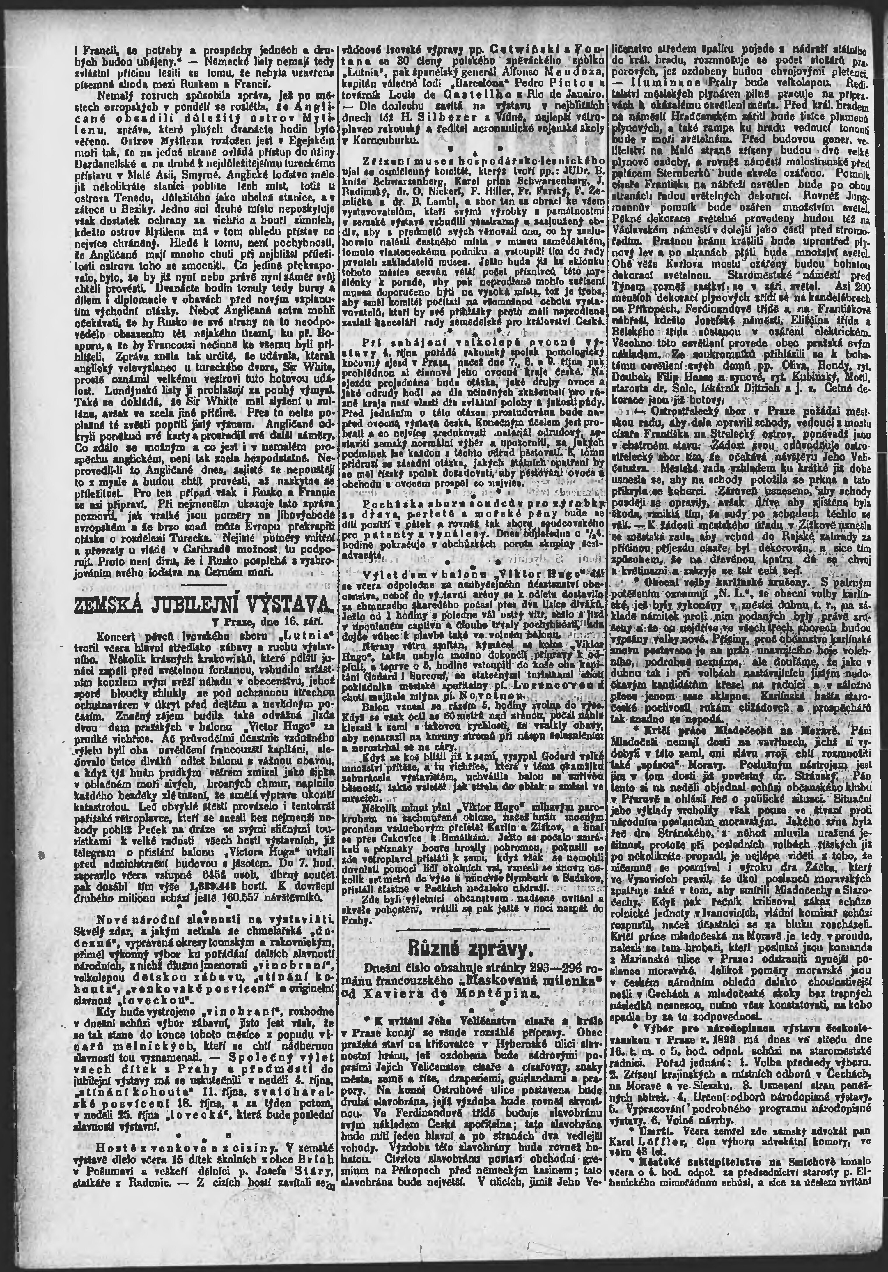 * Datum vydání výtisku: 16.9.1891 Číslo výtisku: 255 Poznámky k výtisku: ranní vydání;