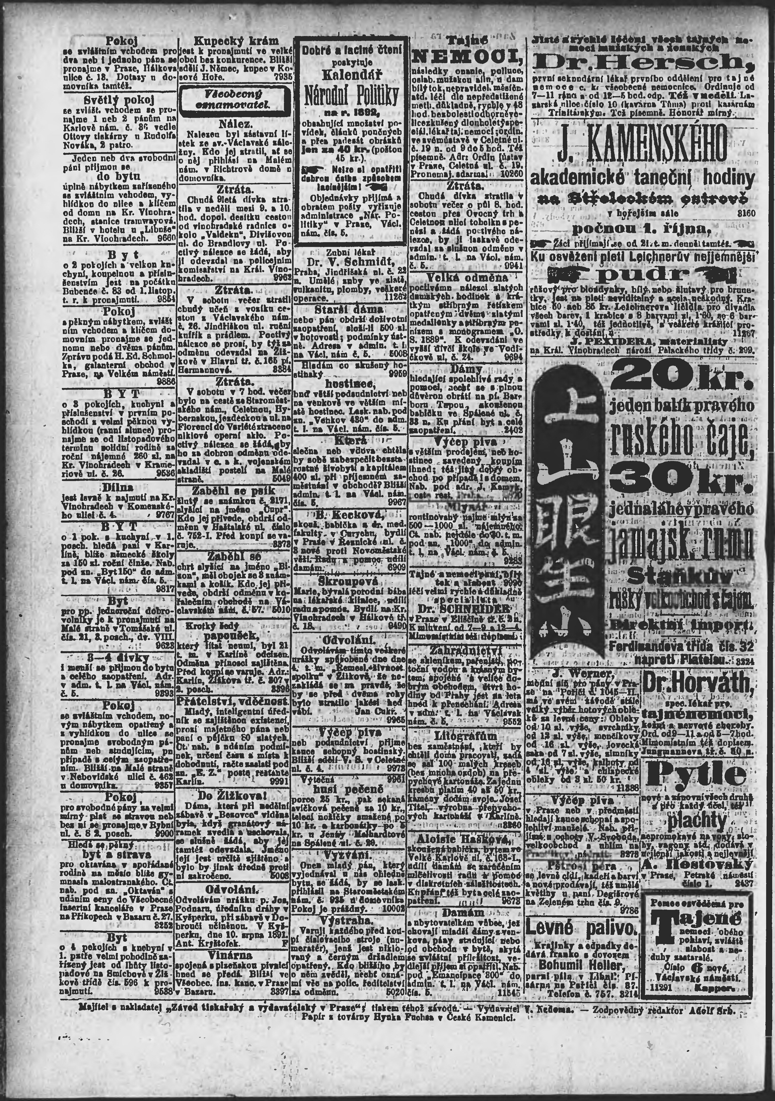 * Datum vydání výtisku: 22.9.1891 Číslo výtisku: 261 Poznámky k výtisku: ranní vydání;