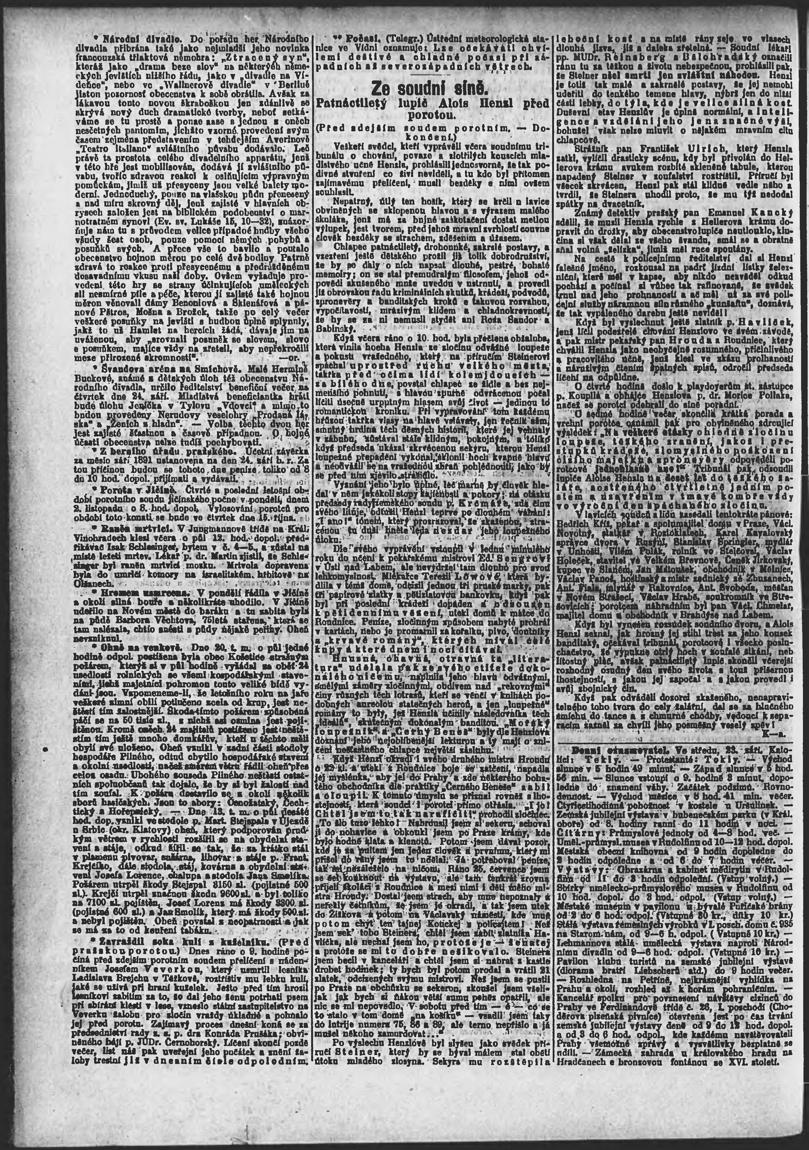 * Datum vydání výtisku: 23.9.1891 Číslo výtisku: 262 Poznámky k výtisku: ranní vydání;