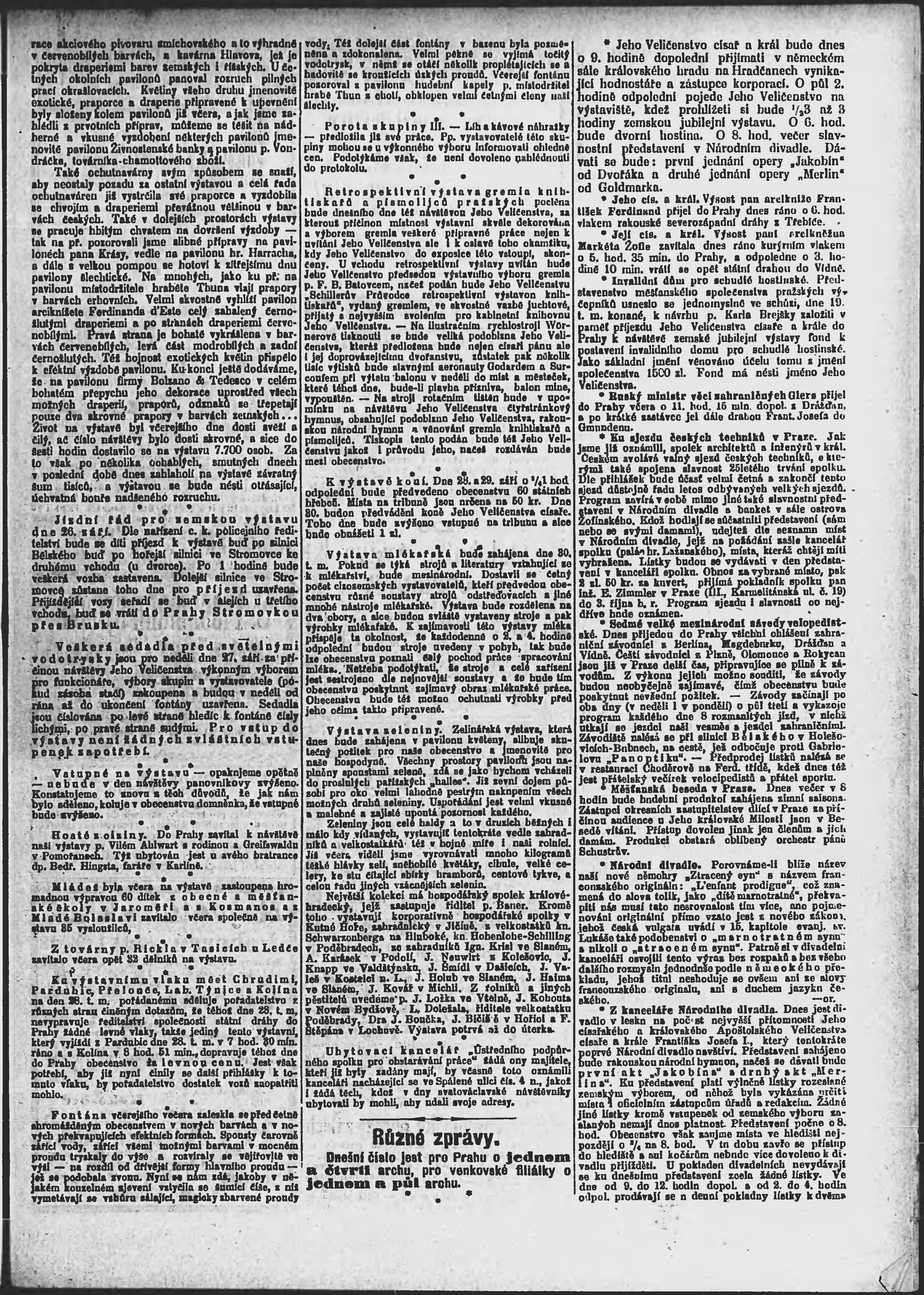 * Datum vydání výtisku: 26.9.1891 Číslo výtisku: 265 Poznámky k výtisku: ranní vydání;