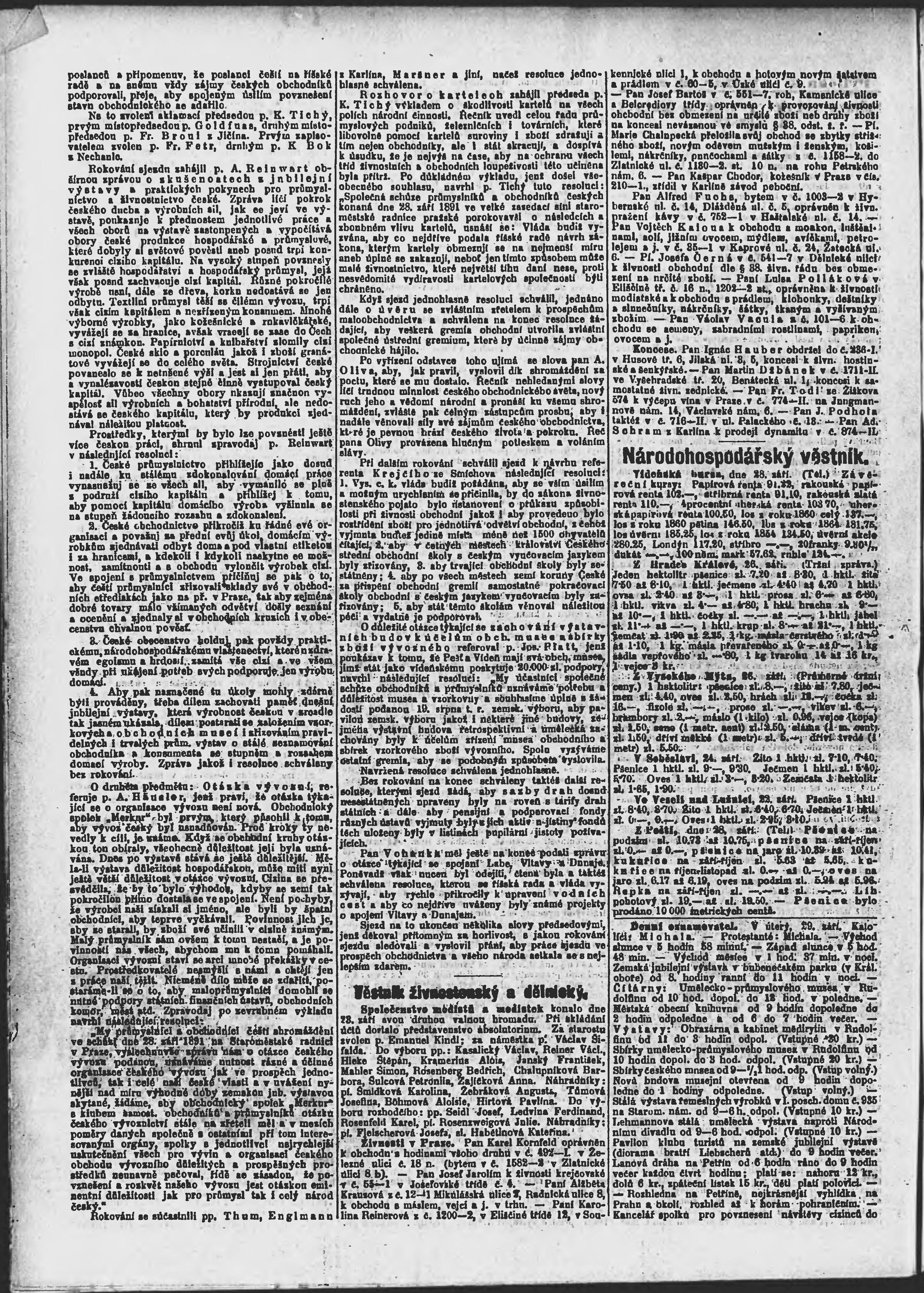 * Datum vydání výtisku: 29.9.1891 Číslo výtisku: 267 Poznámky k výtisku: ranní vydání;