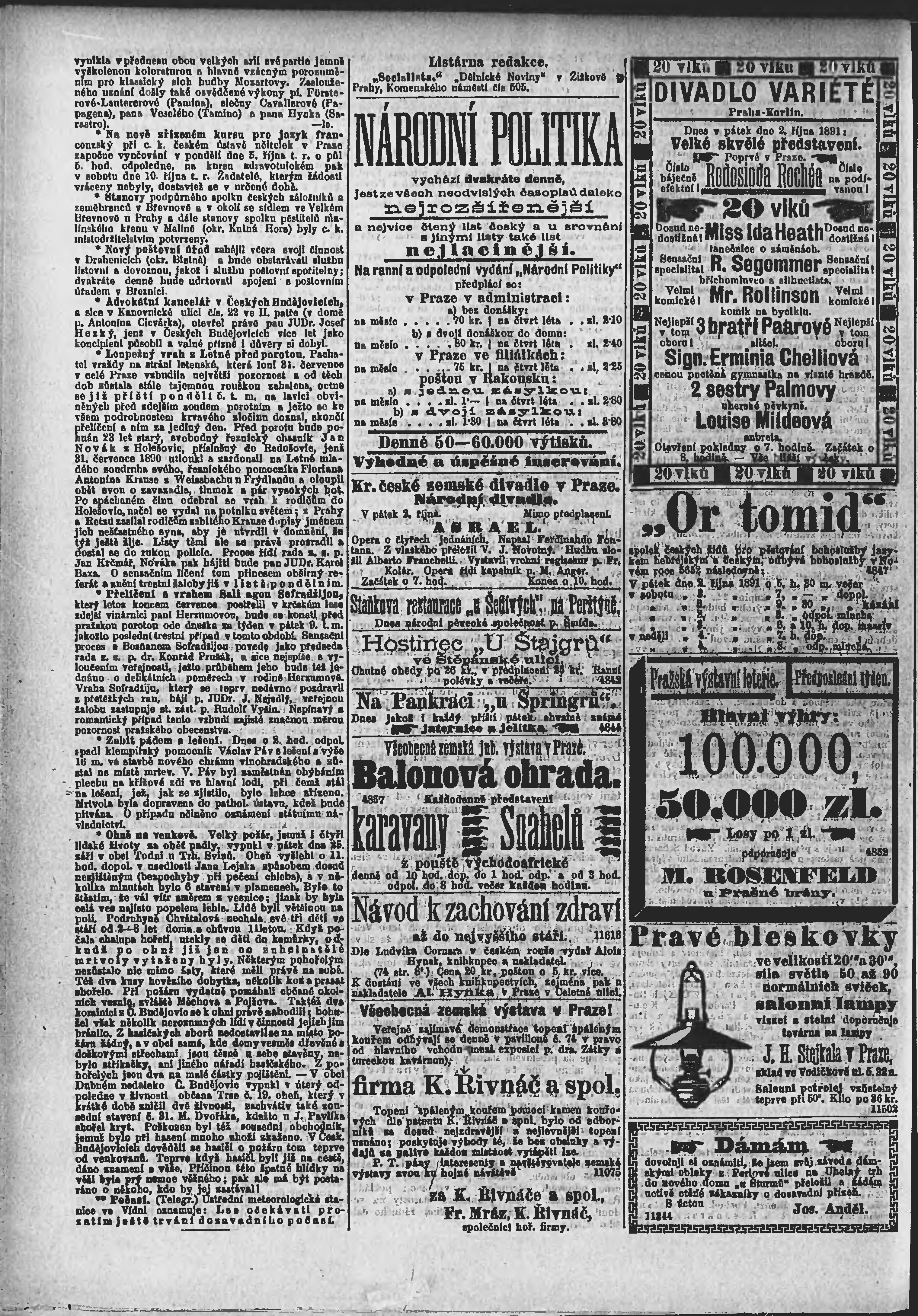 * Datum vydání výtisku: 2.10.1891 Číslo výtisku: 270 Poznámky k výtisku: ranní vydání;