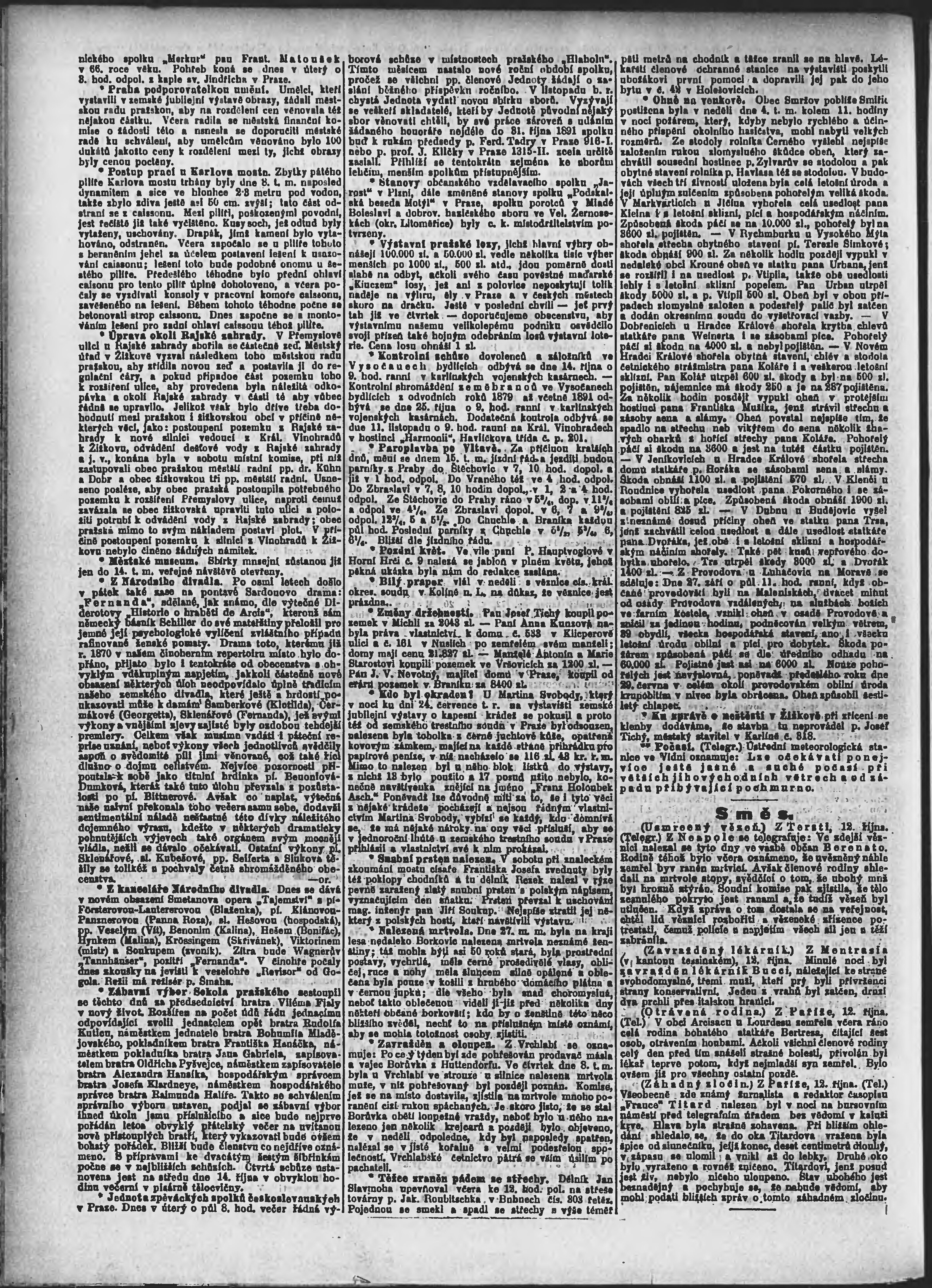 * Datum vydání výtisku: 13.10.1891 Číslo výtisku: 281 Poznámky k výtisku: ranní vydání;